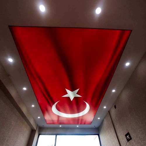 Bayrak desenli gergi tavanlar, mekanınıza estetik ve anlam katmanın harika bir yoludur. Dayanıklı, kolay bakım gerektiren ve hızlı monte edilebilen bu tavanlar, dekorasyonunuza özgün bir dokunuş katmak için ideal bir seçenektir. Bayrak motifli tavan dekorasyonu ile mekanınıza yeni bir hava katın ve ziyaretçilerinizi etkileyin.