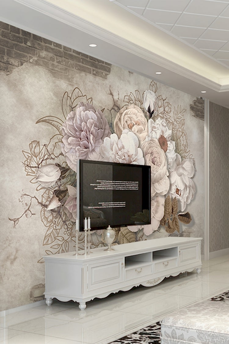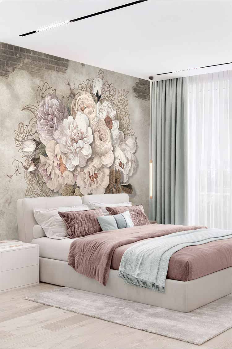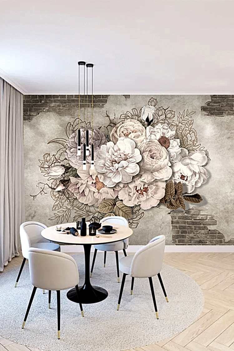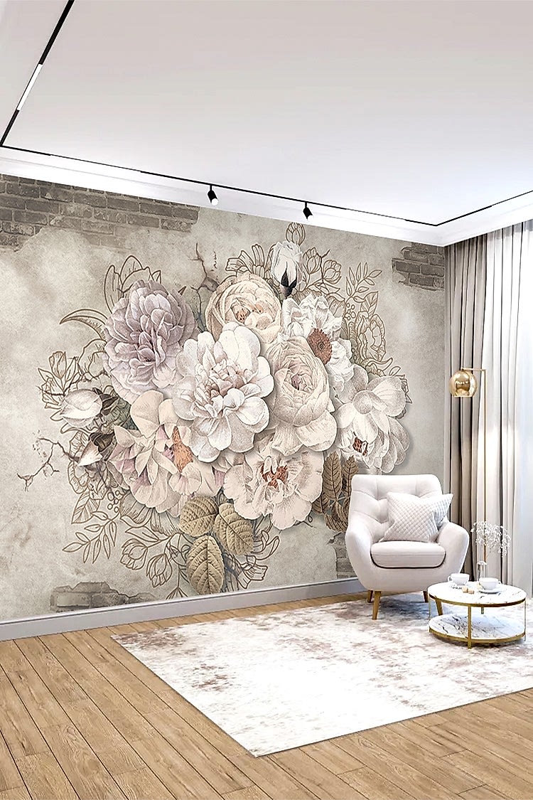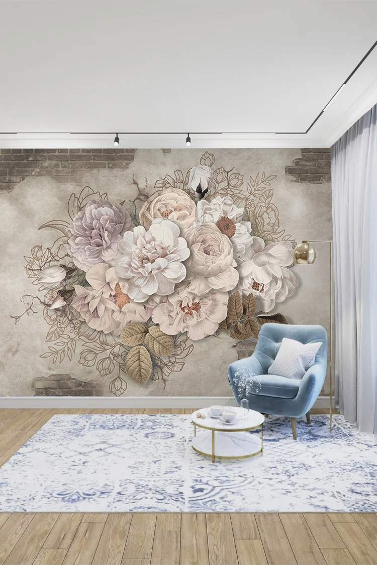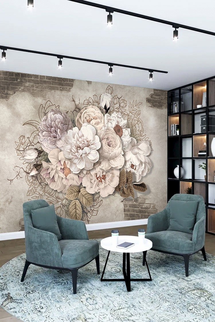 Çiçek ve Tuğla Desenli Duvar Kağıdı