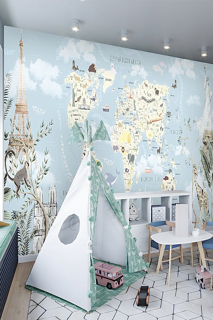 Çocuklar İçin Dünya Haritası Duvar Kağıdı