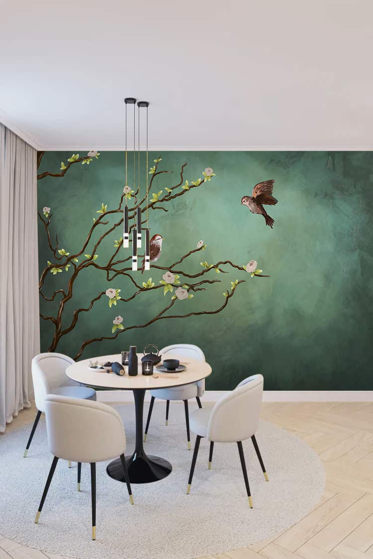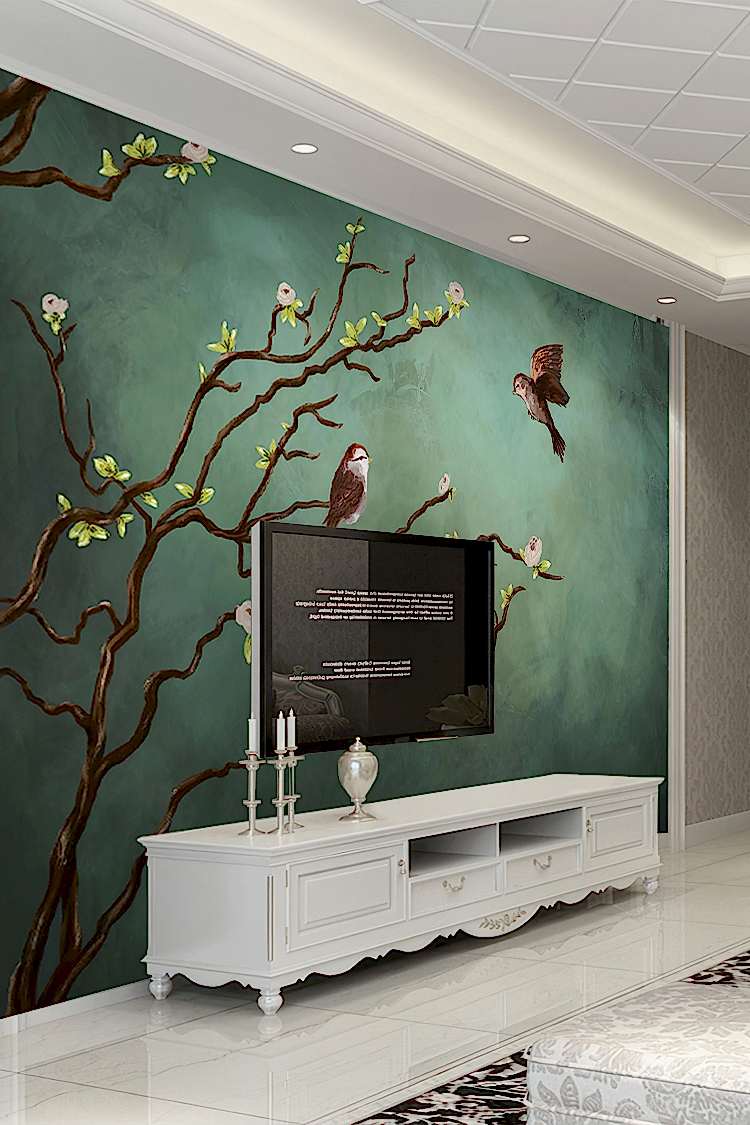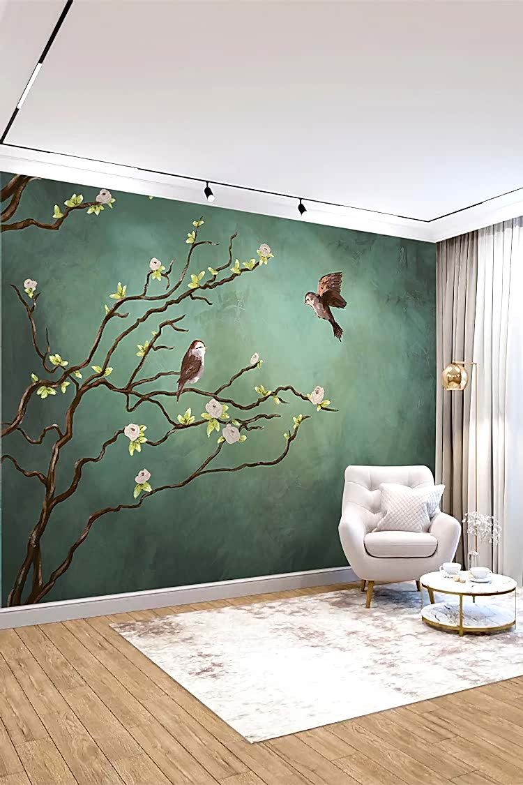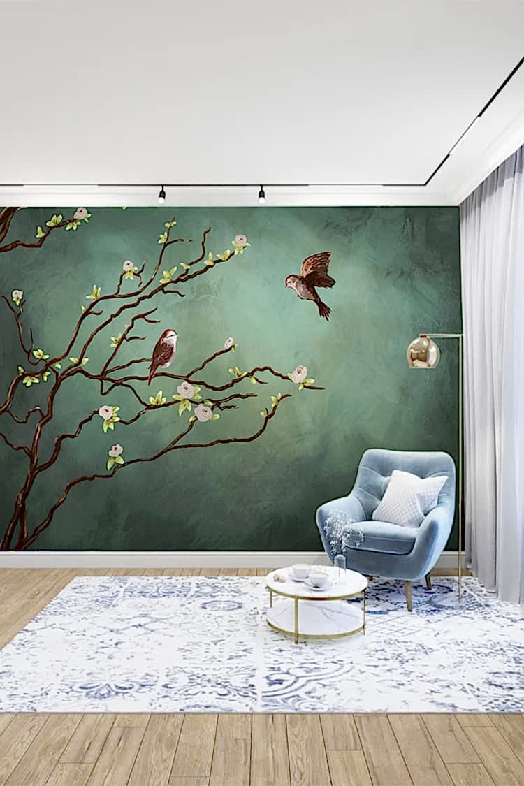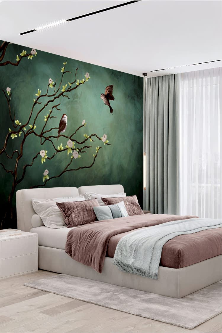 Doğal Kuşlar ve Çiçeklerle Şık Duvar Kağıdı
