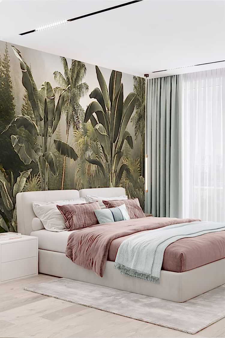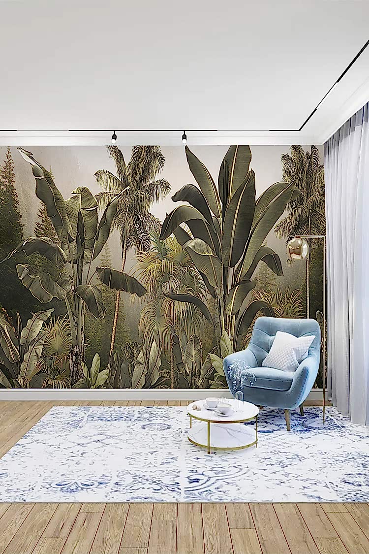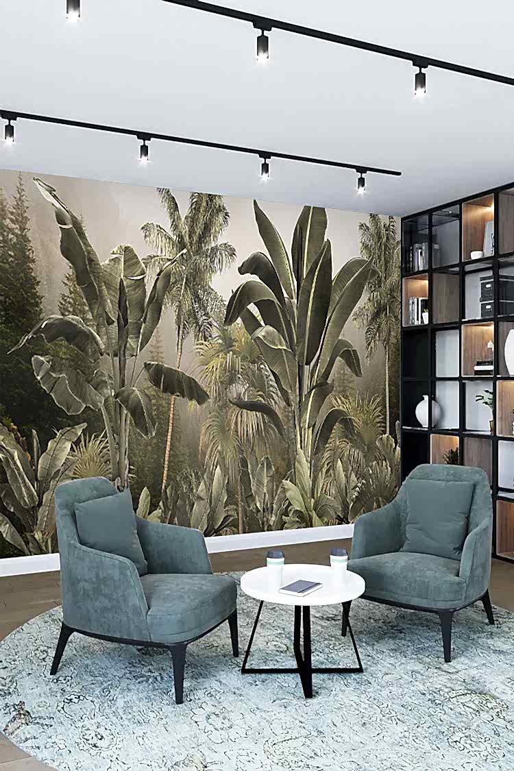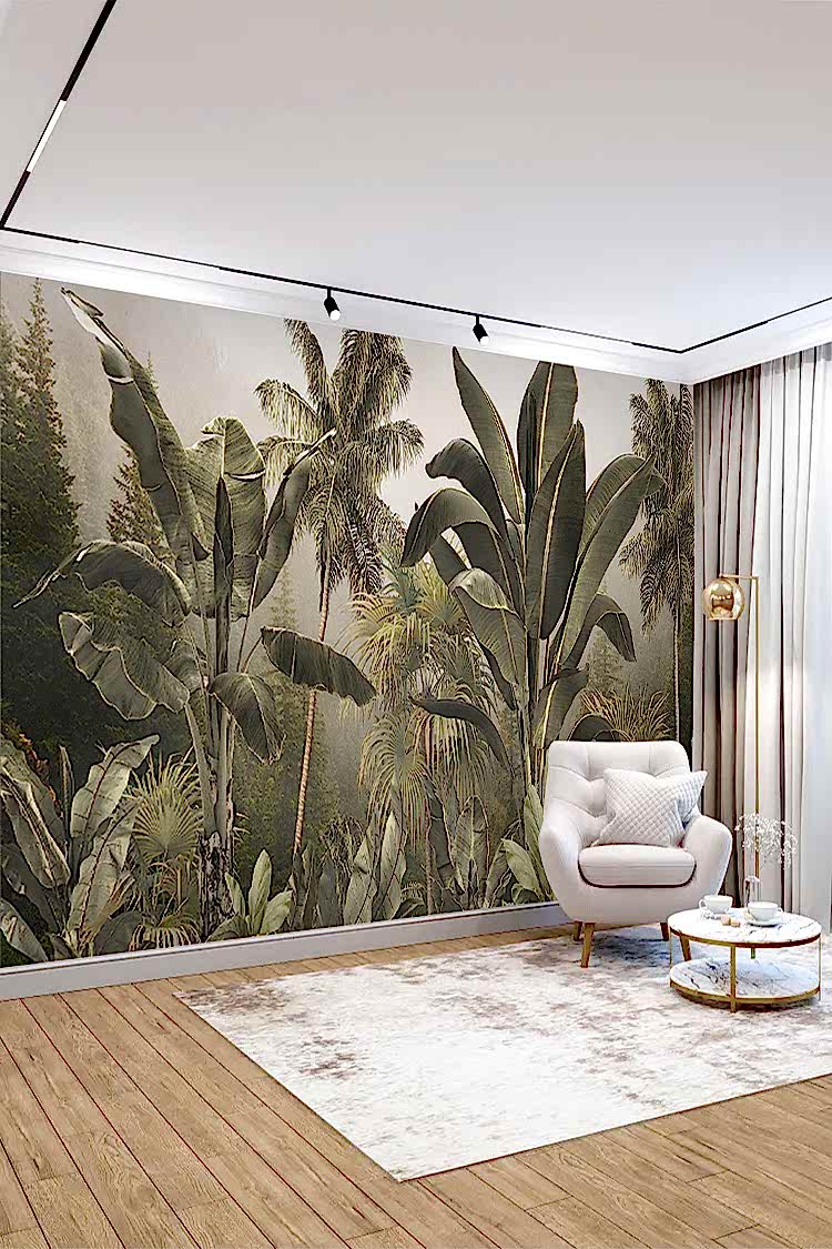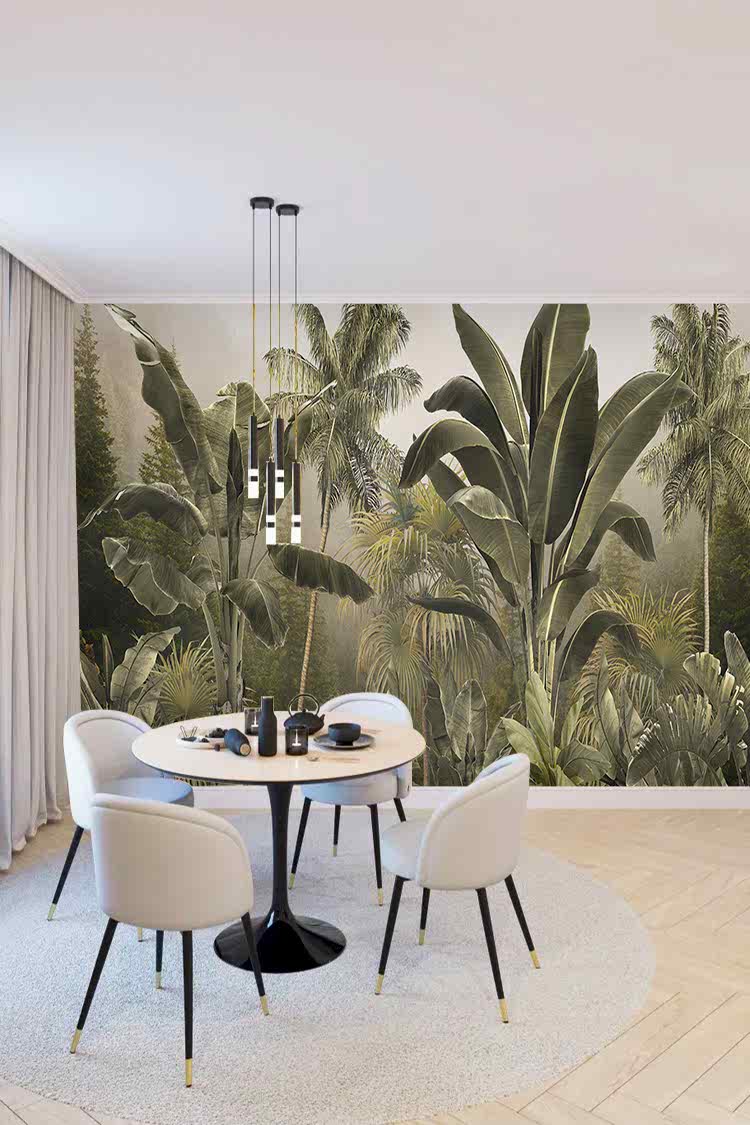 Doğal Tropikal Bitkiler ve Palmiyeler ile Şık Duvar Kağıdı Tasarımı
