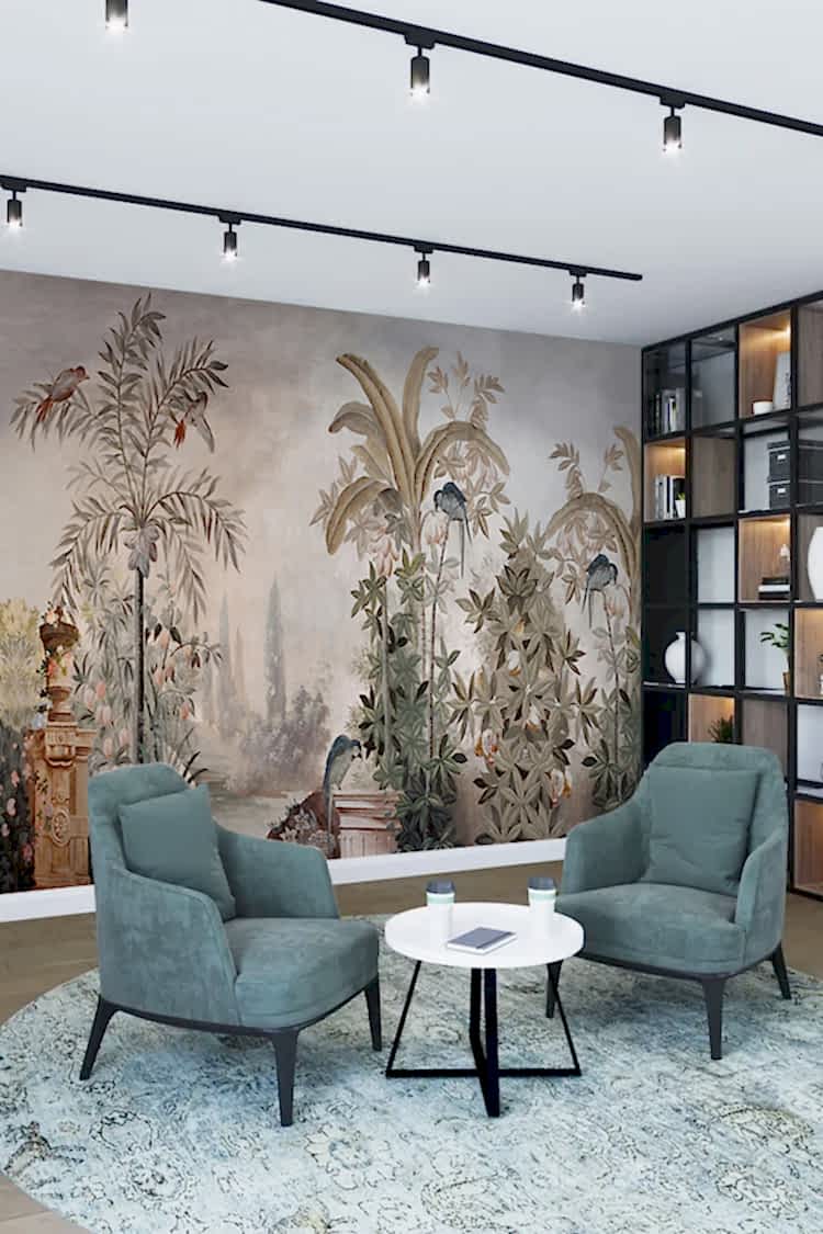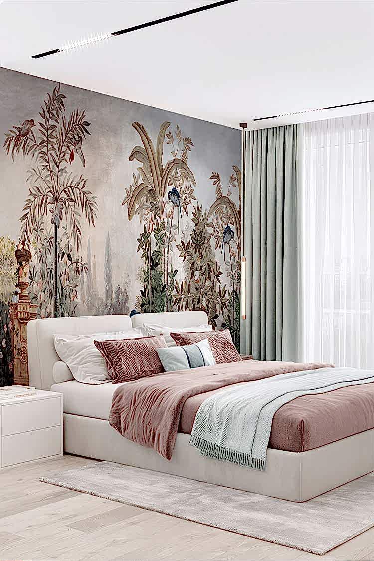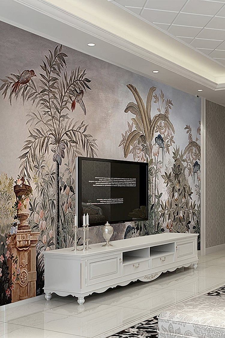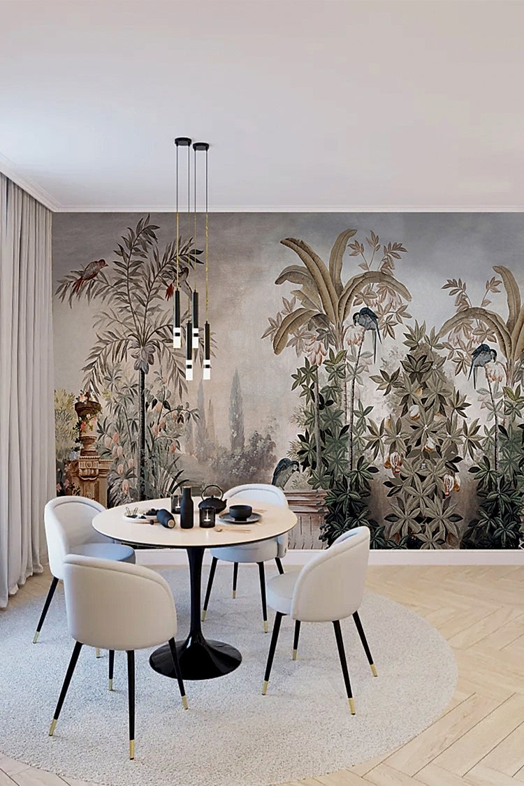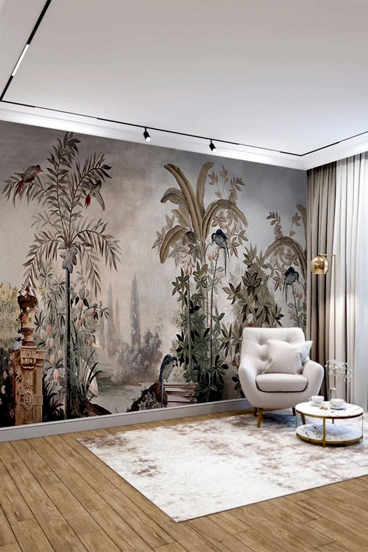Egzotik Kuş ve Palmiye Desenli Duvar Kağıdı