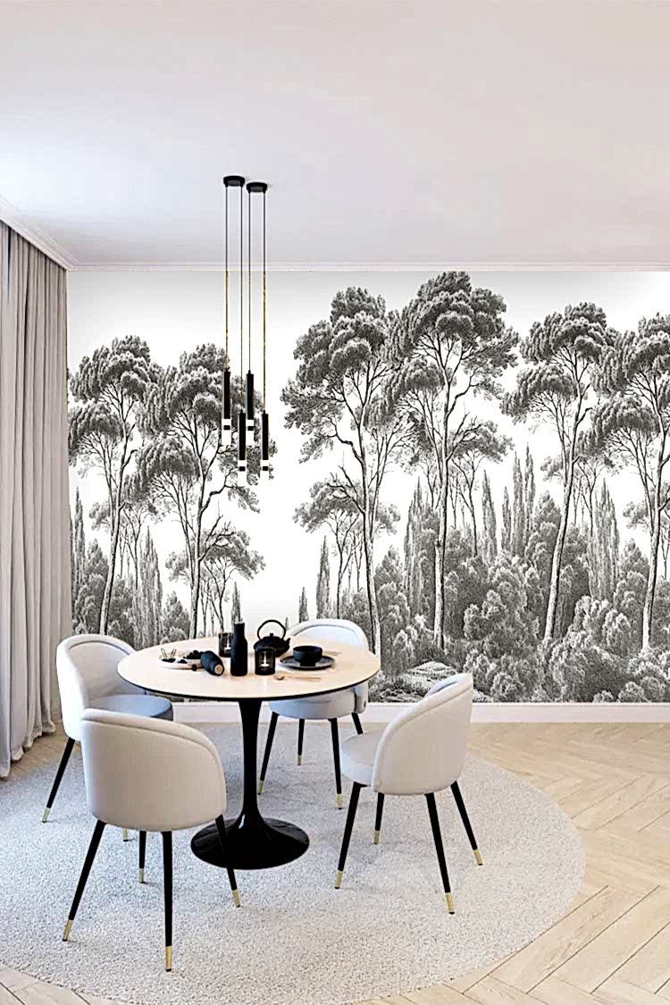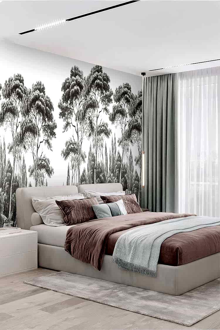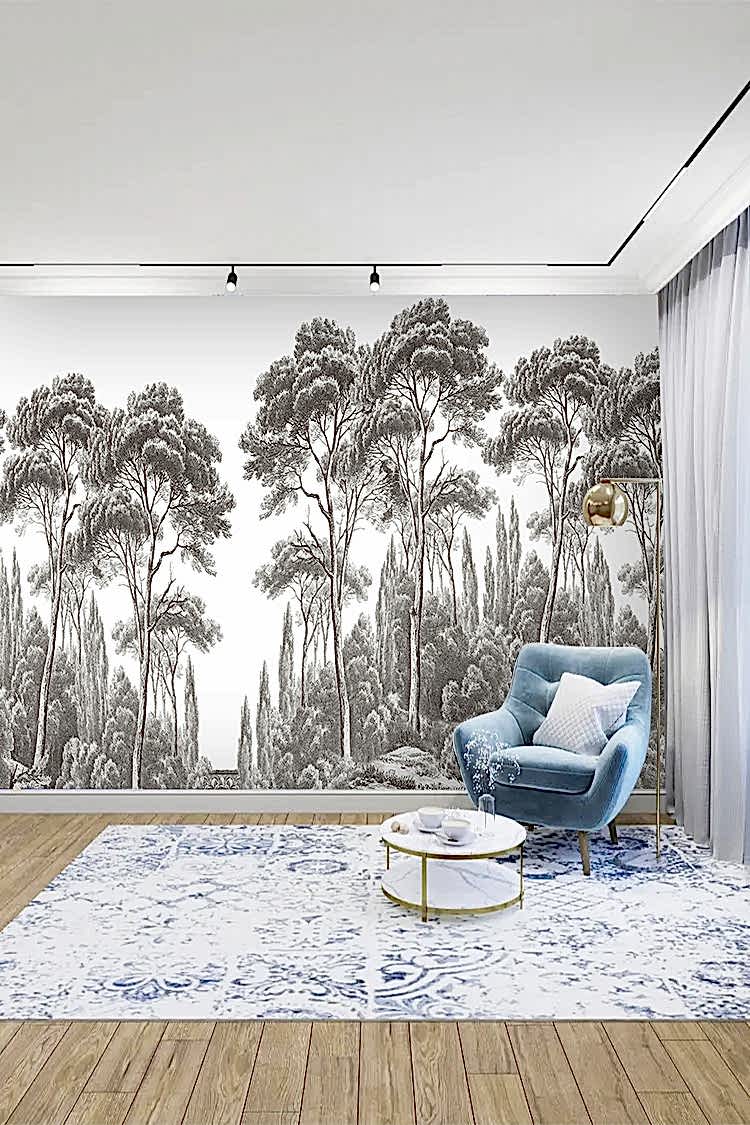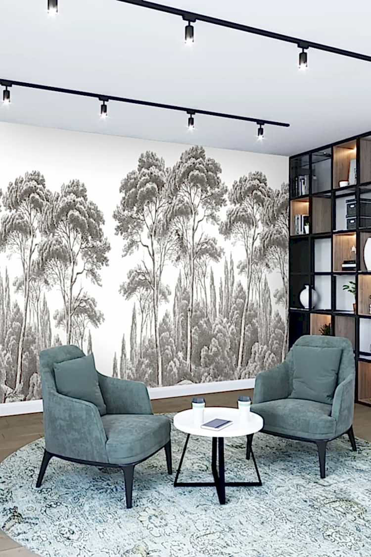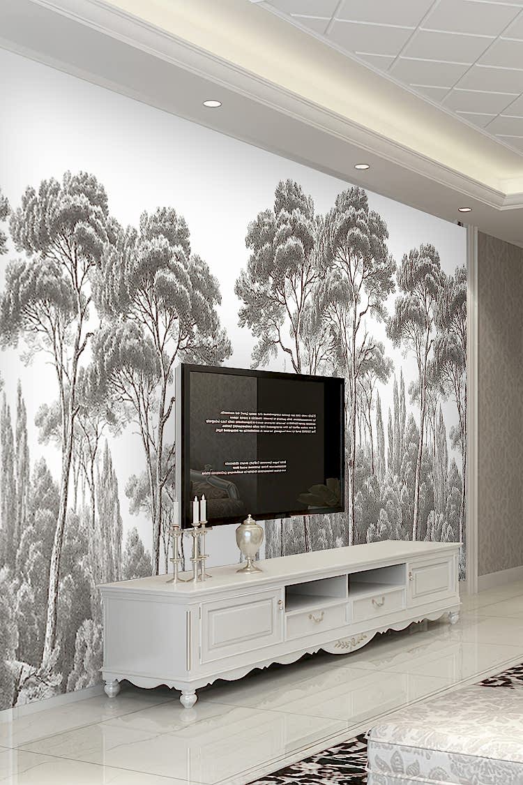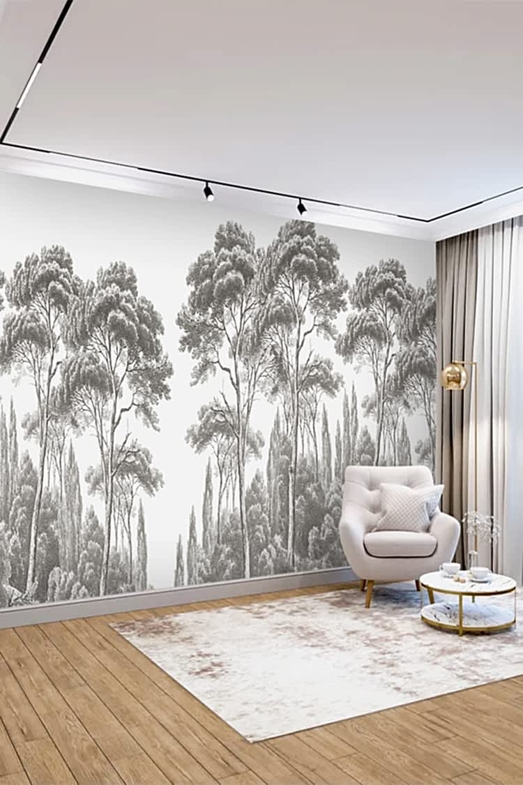 Gri Tonlu Orman Desenli Duvar Kağıdı