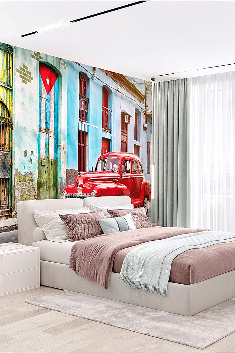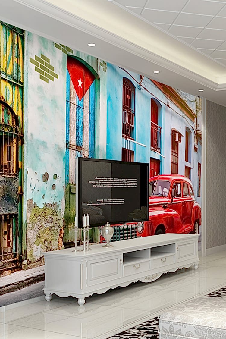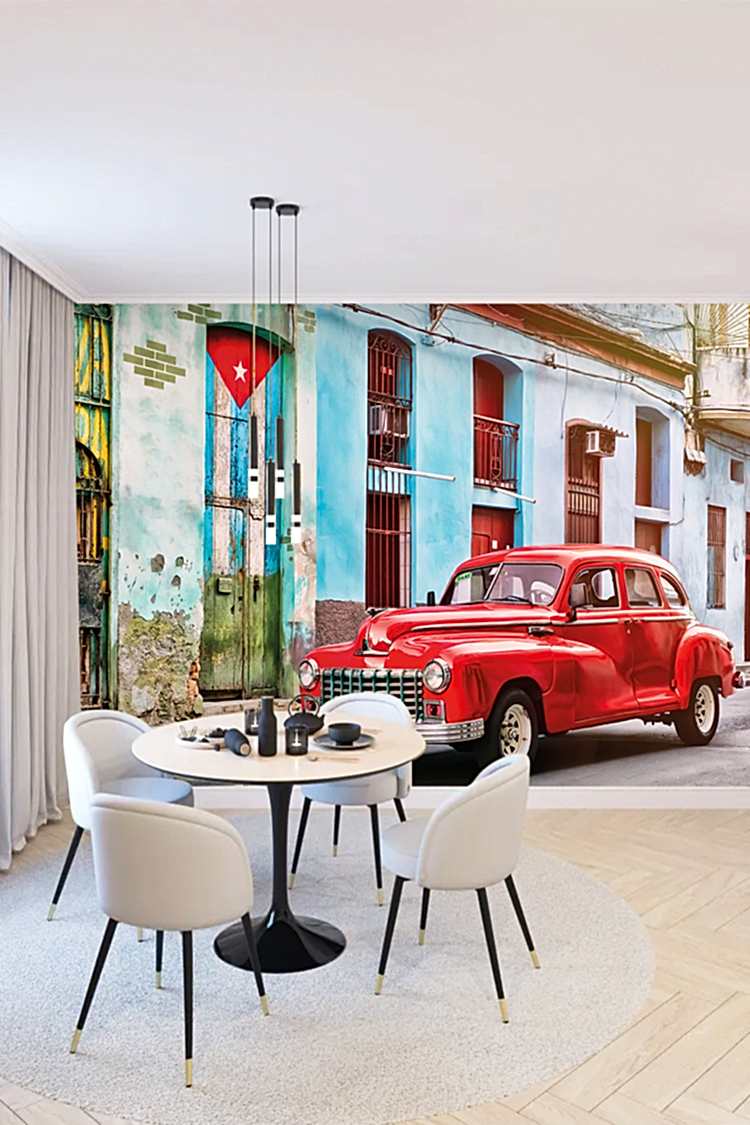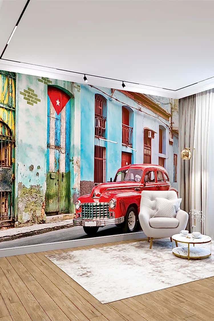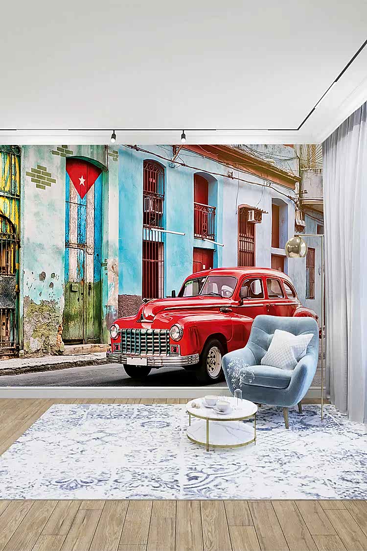 Küba Sokaklarında Klasik Araba Duvar Kağıdı