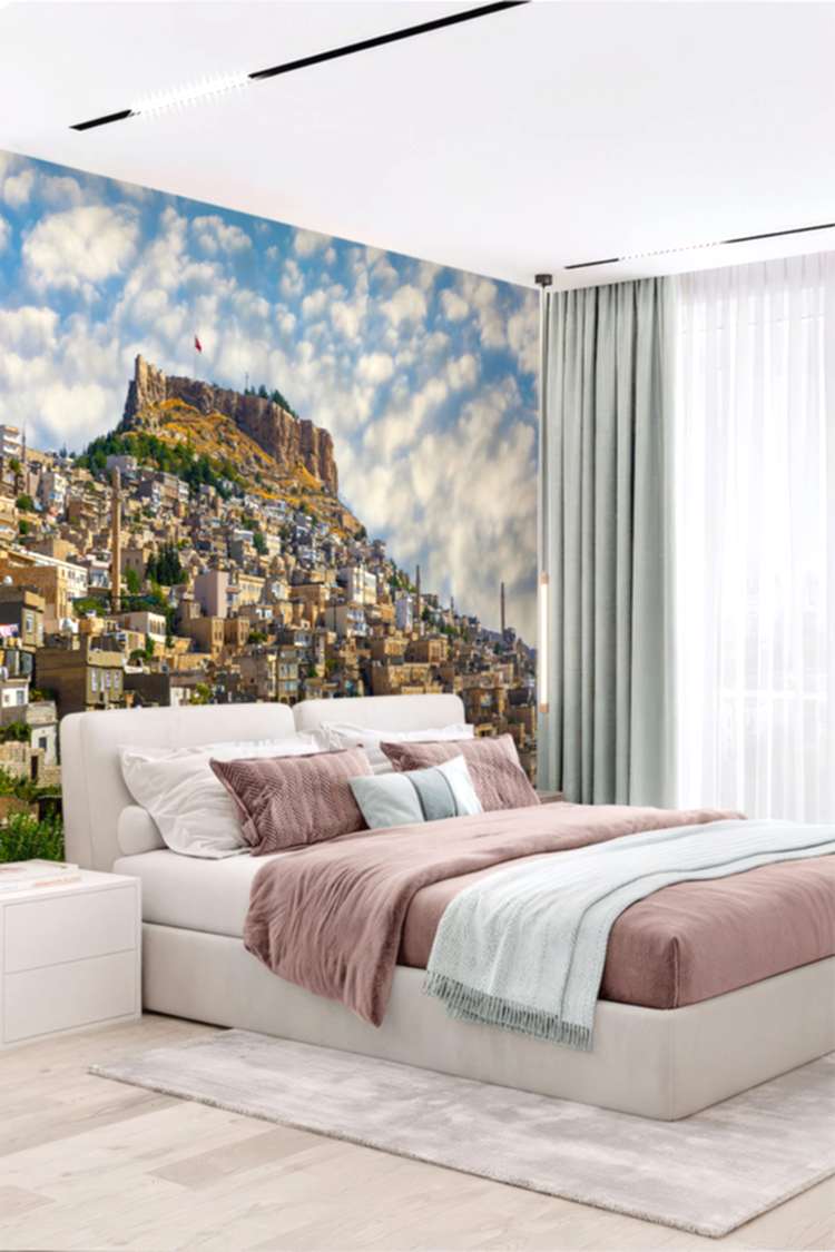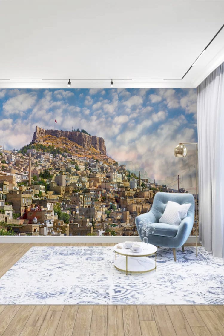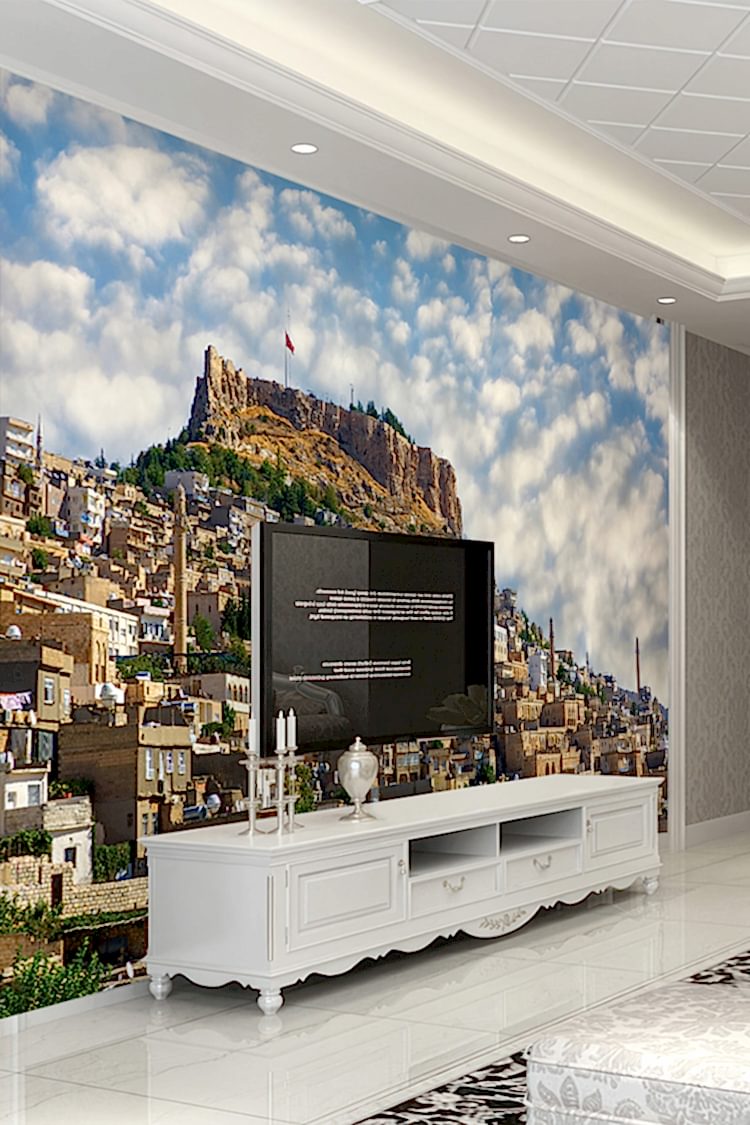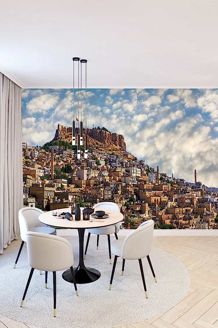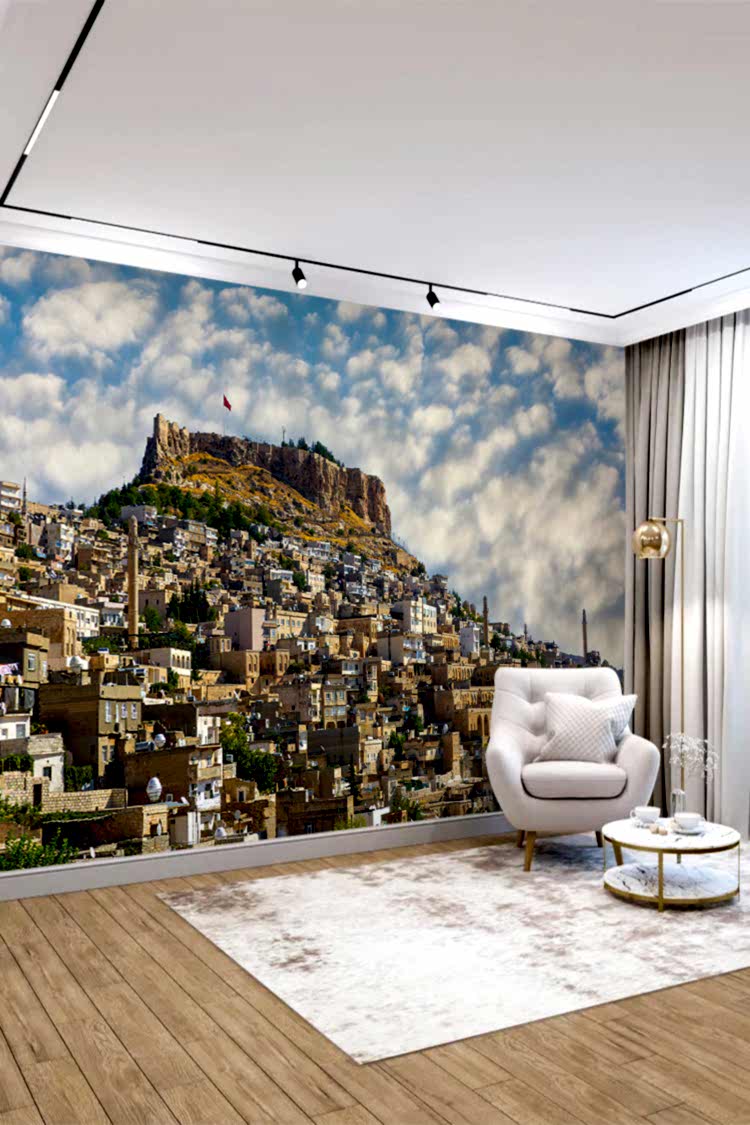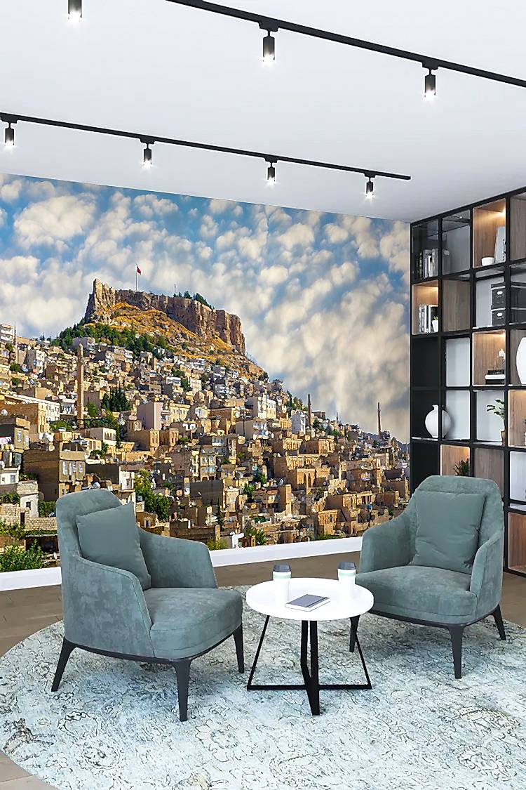 Mardin Panoramik Şehir Silüeti-Bulutlu Gündüz Tarihi Duvar Kağıdı