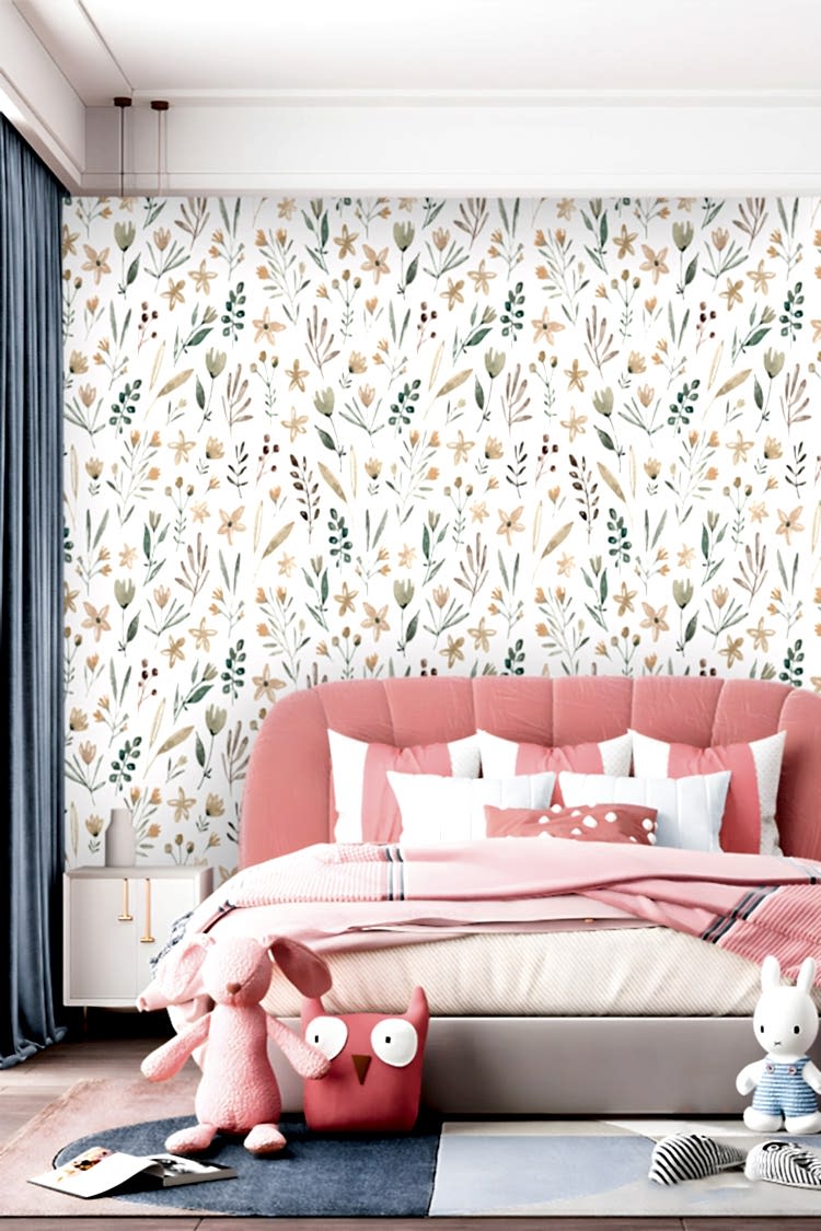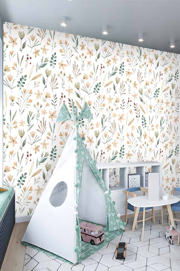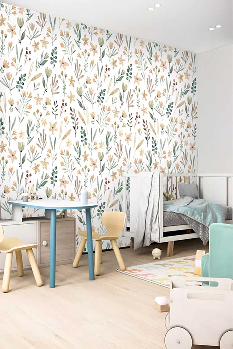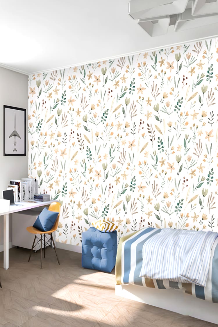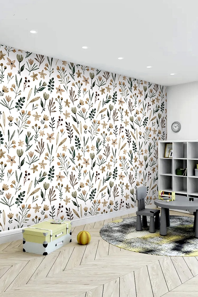 Minimal Botanik Çiçek Desenli Duvar Kağıdı