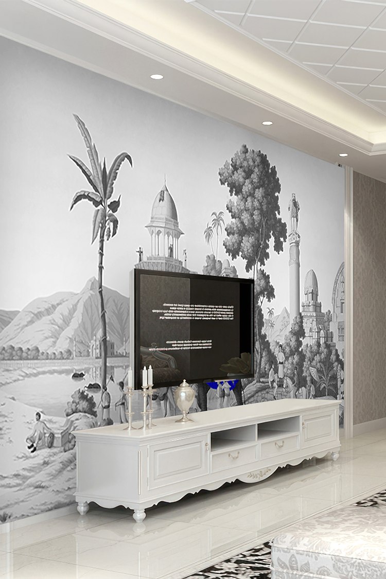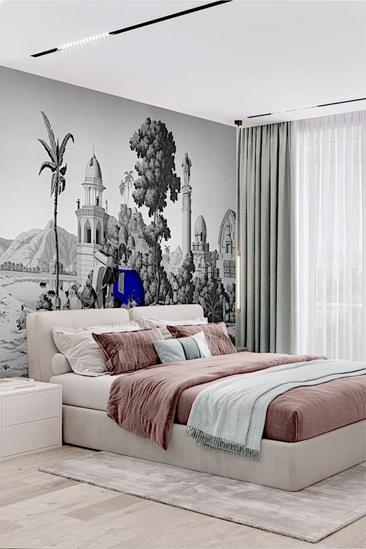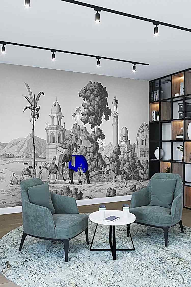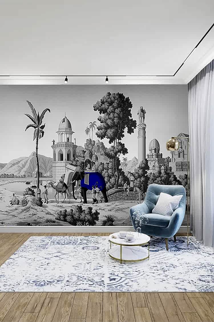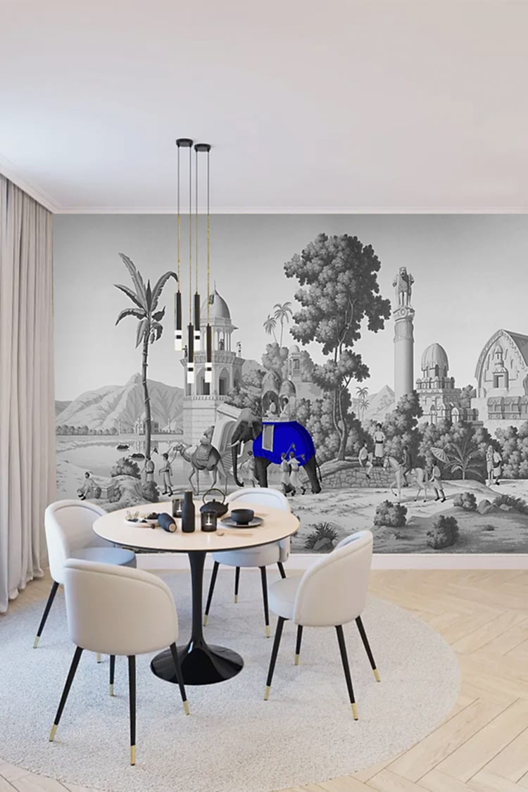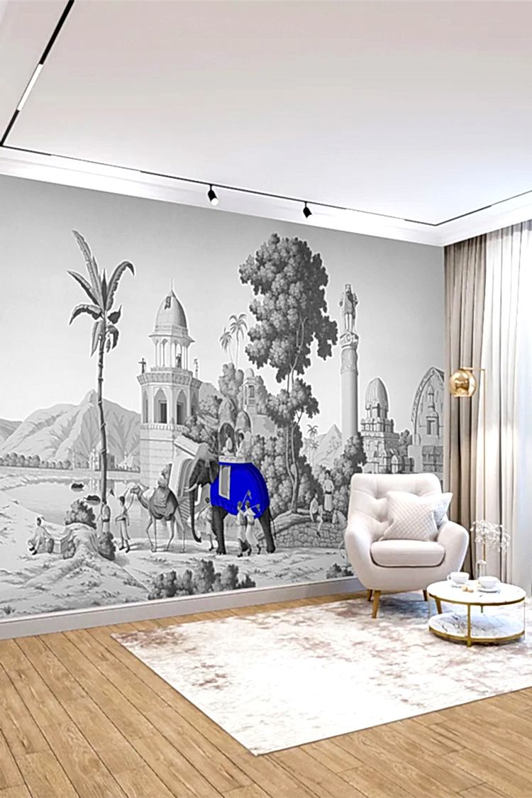 Oryantal Manzara ve Fil Desenli Duvar Kağıdı
