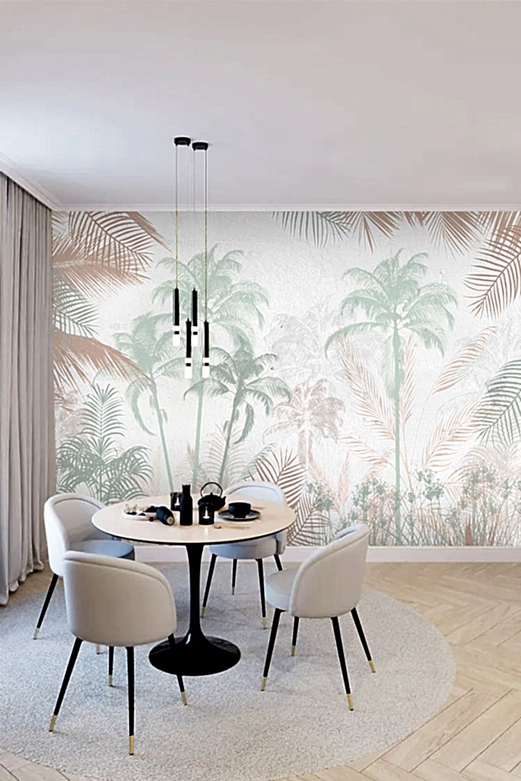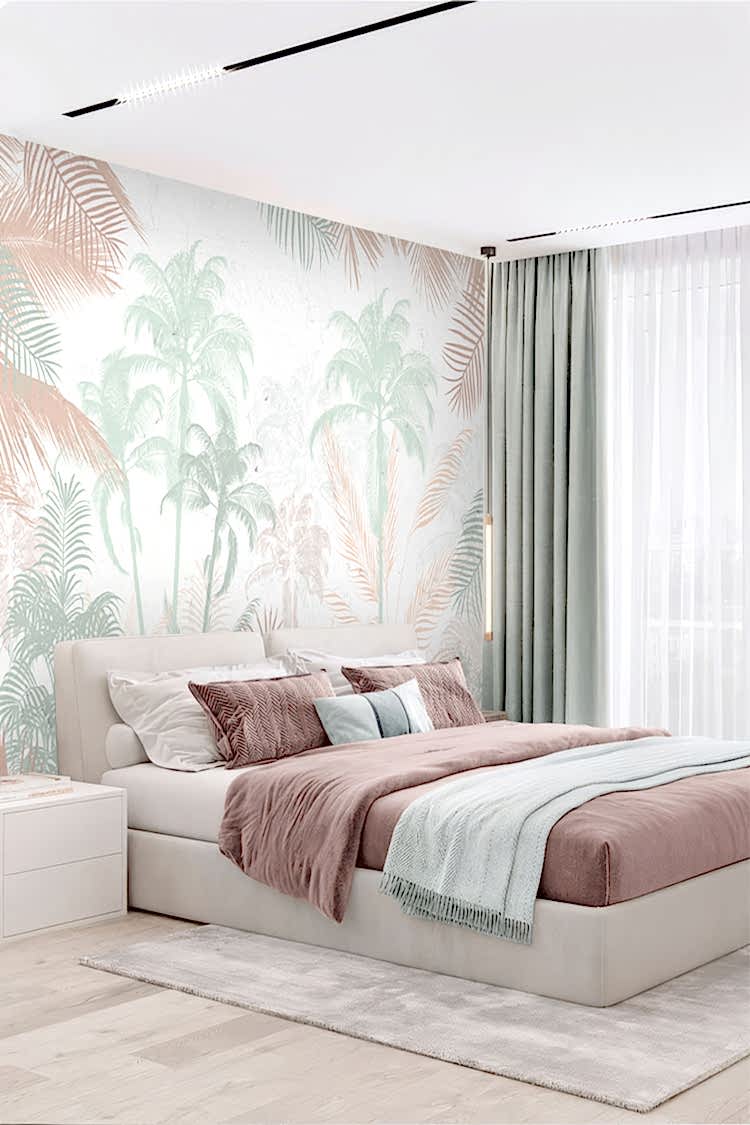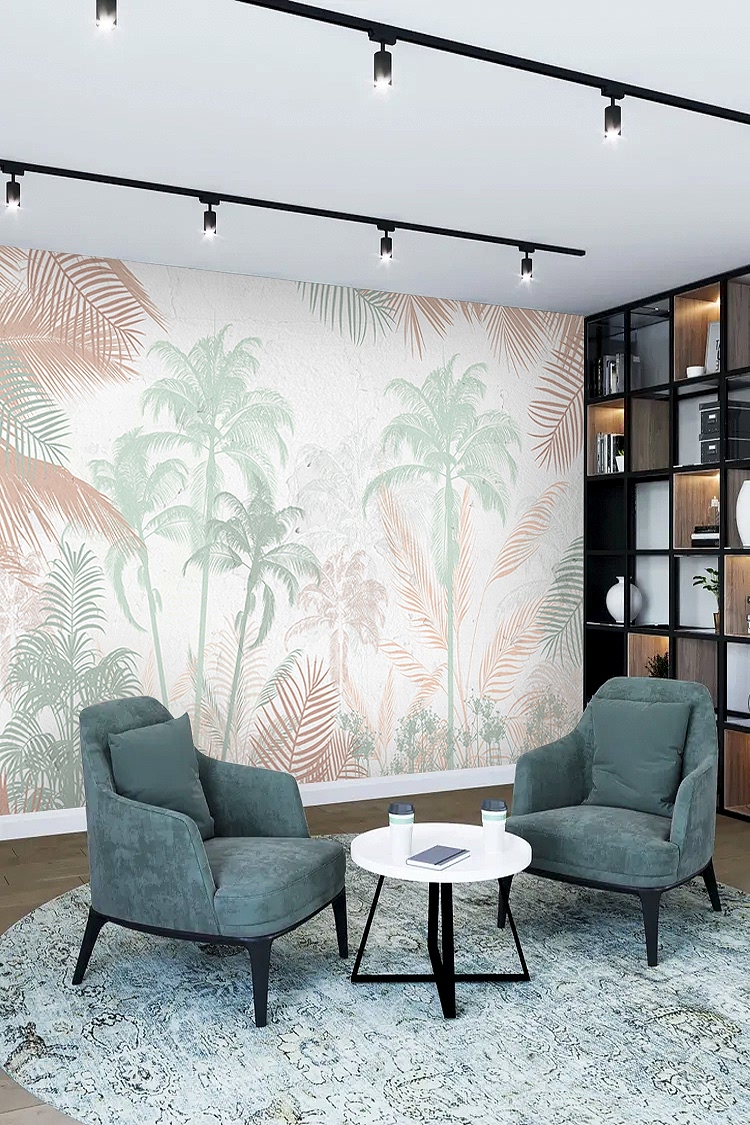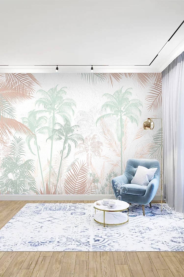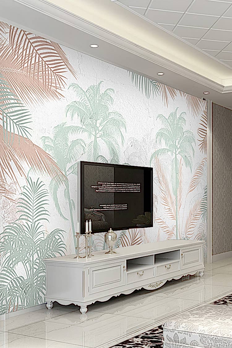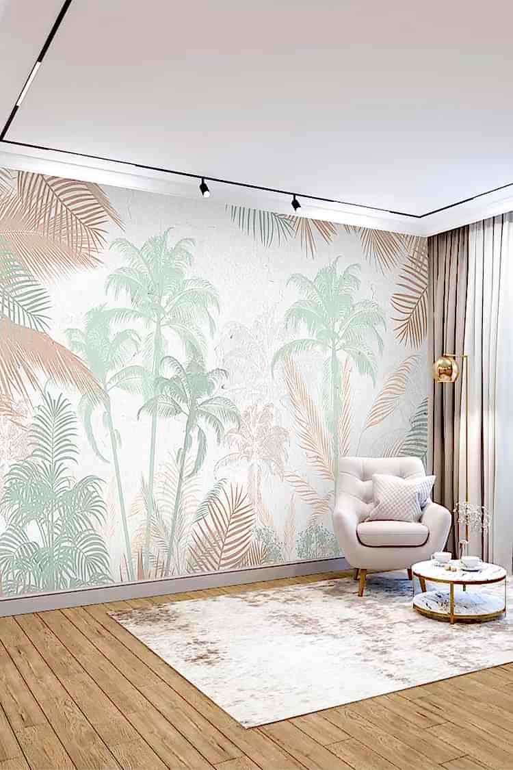 Pastel Tropikal Bitki Desenli Duvar Kağıdı