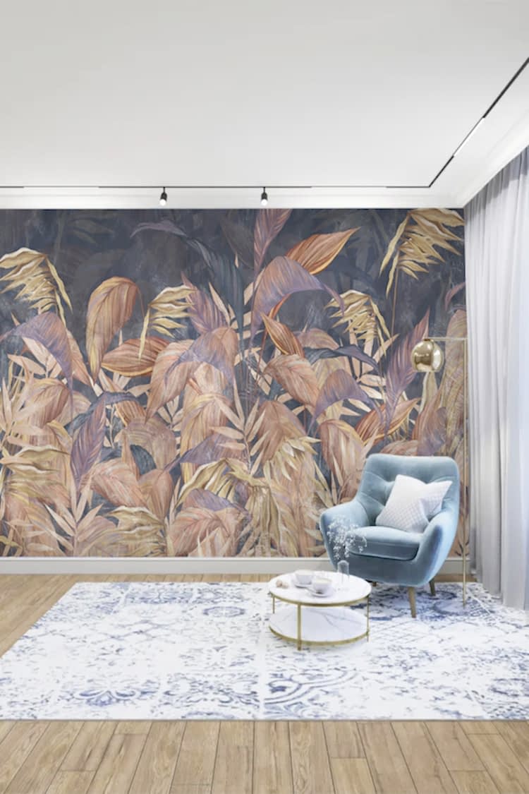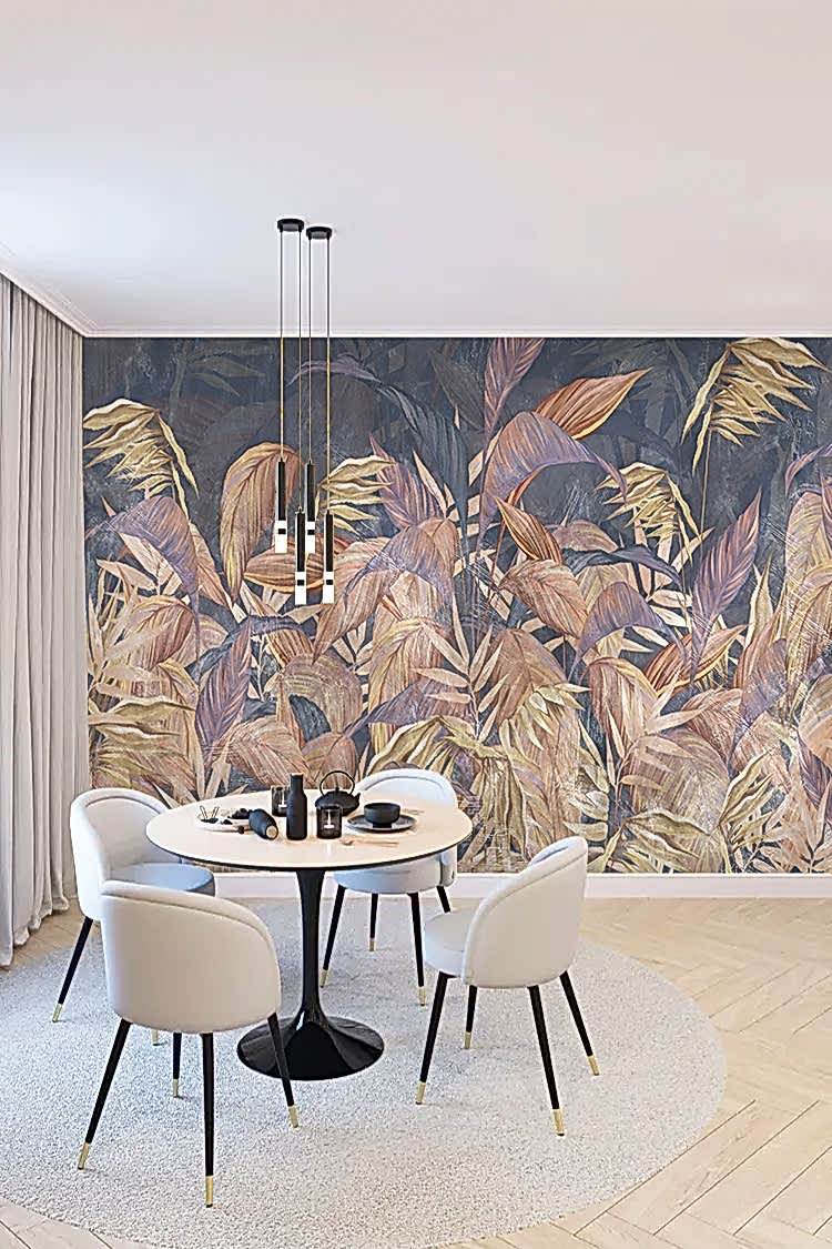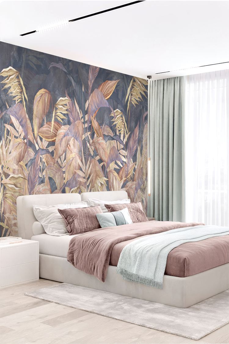Pastel Yaprak Desenli Duvar Kağıdı