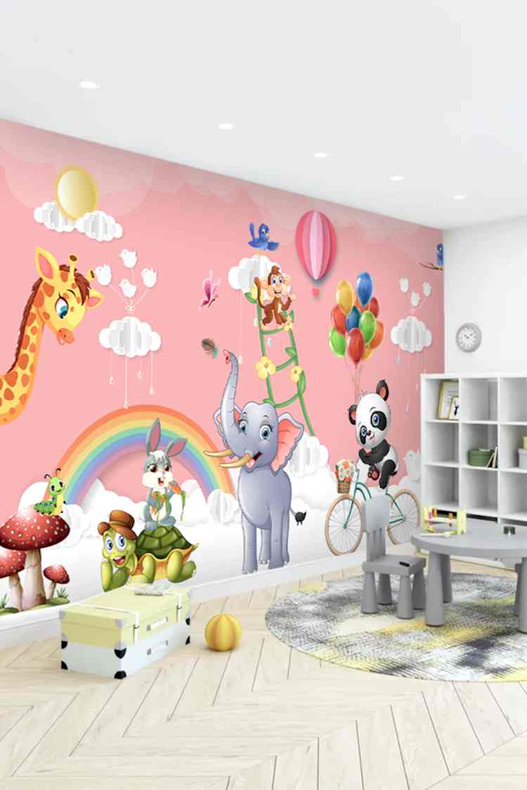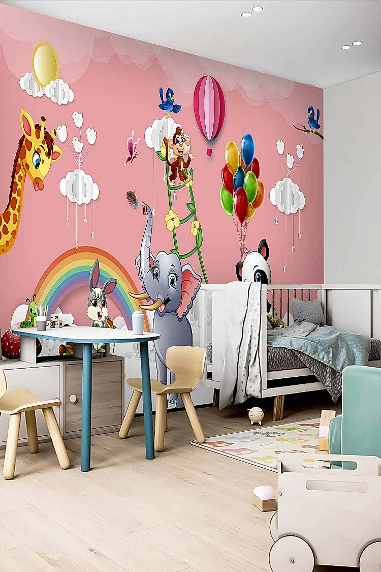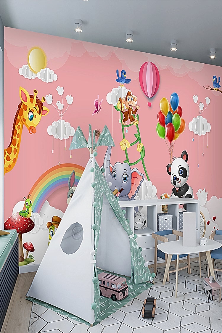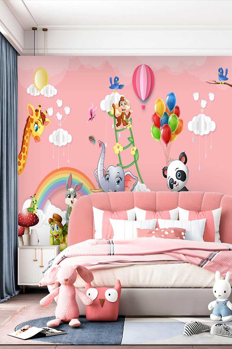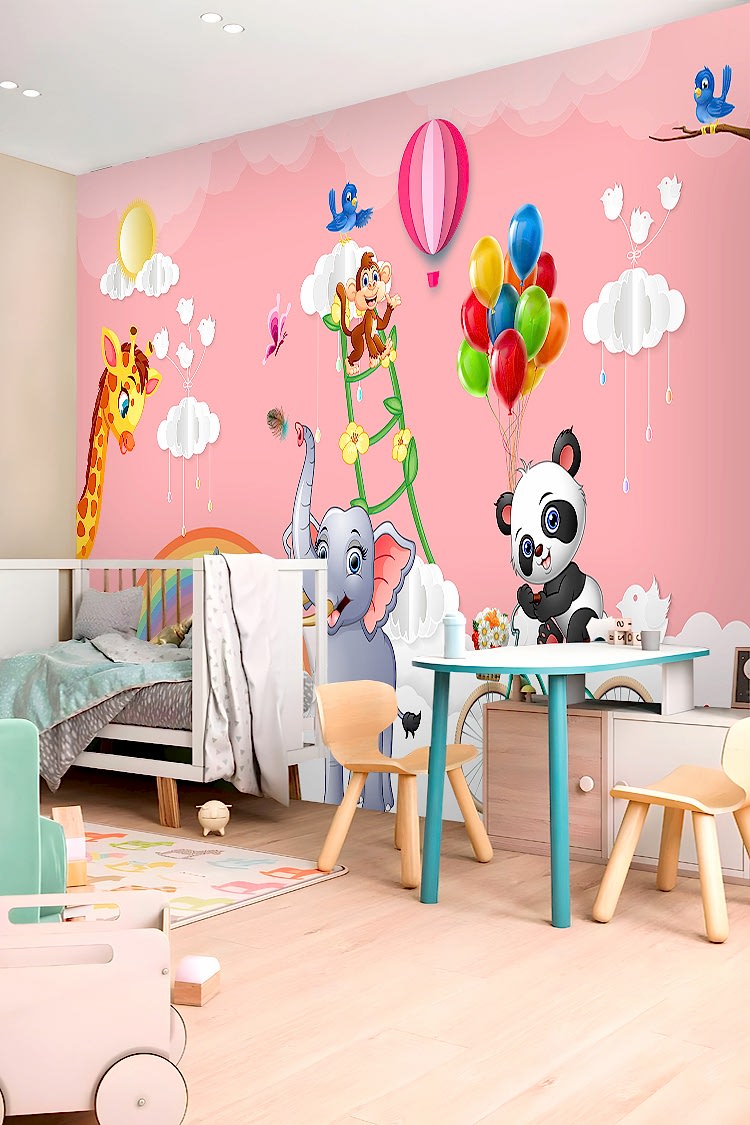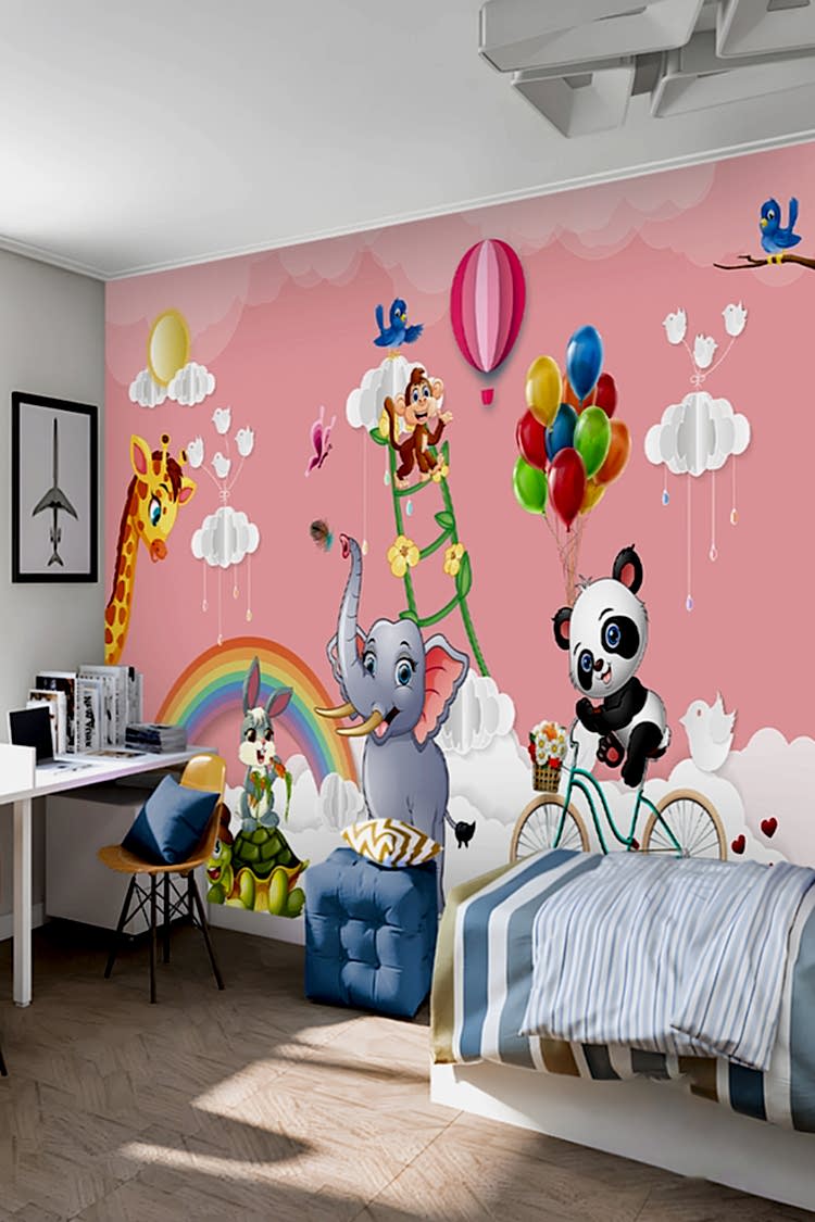 Renkli Balonlar ve Sevimli Hayvanlar Duvar Kağıdı