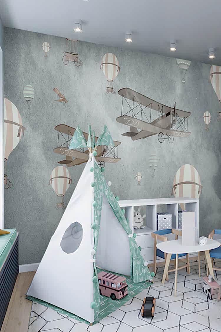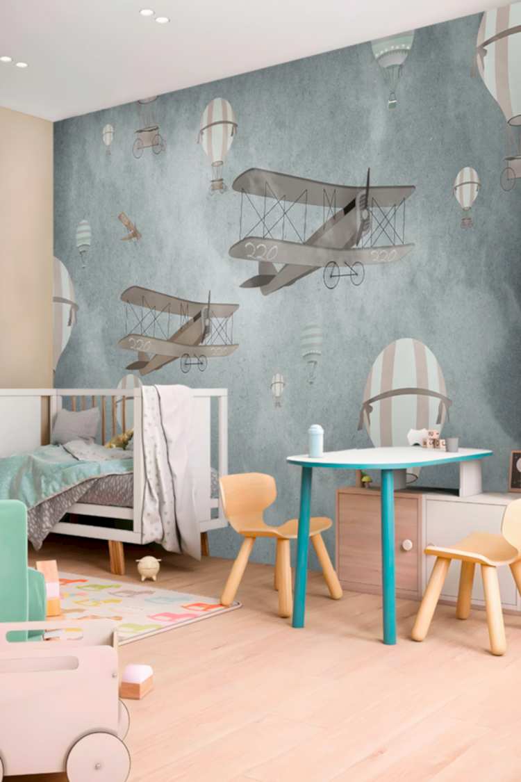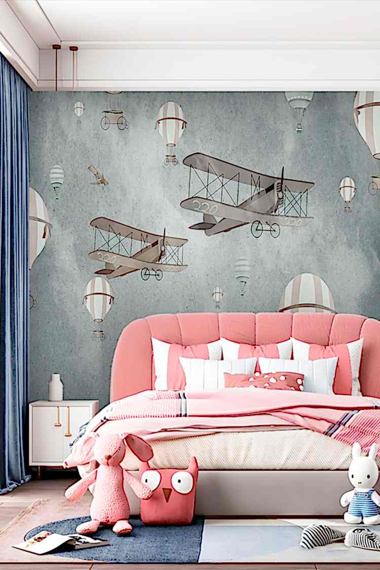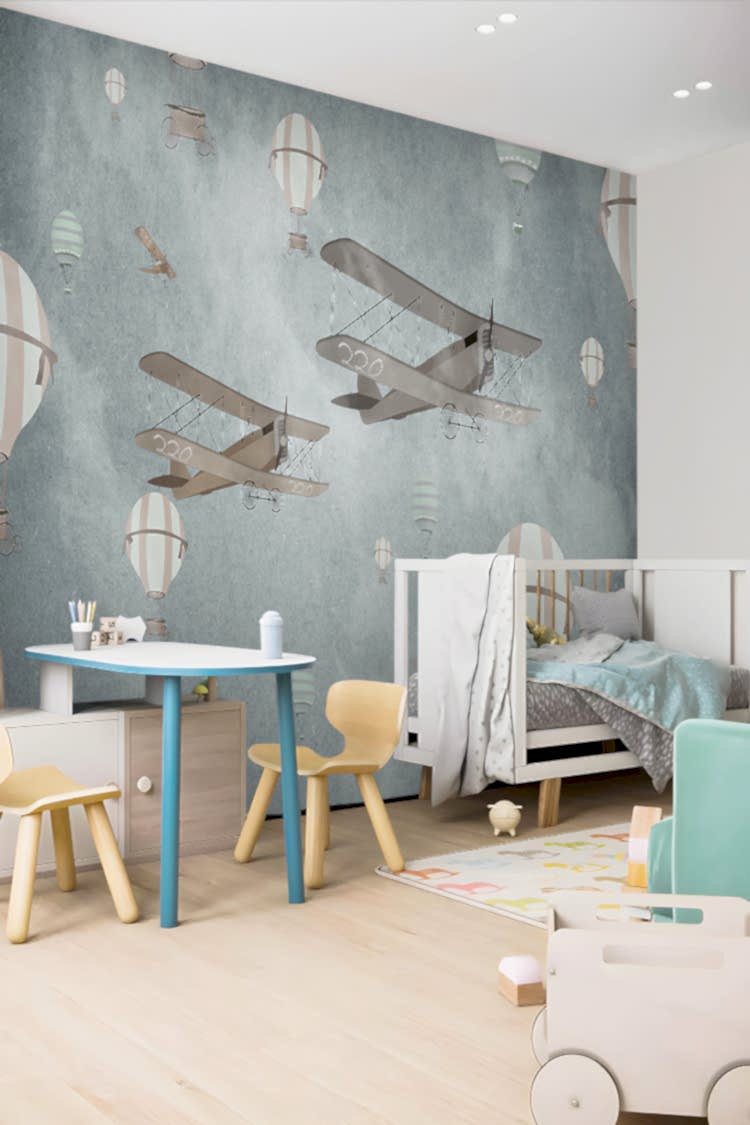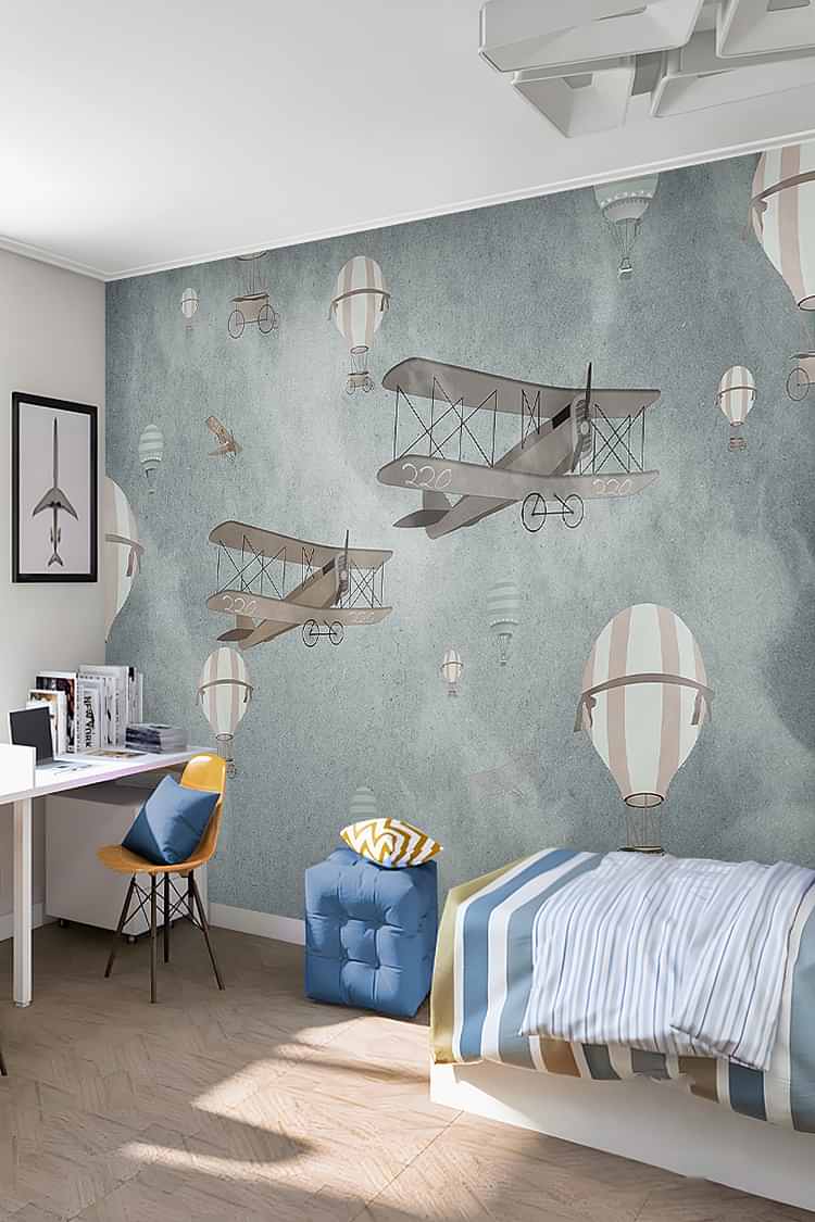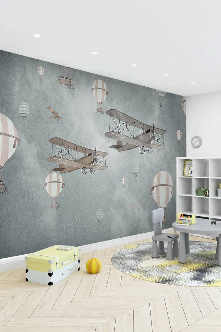 Retro Uçan Balonlar ve Uçaklar Duvar Kağıdı