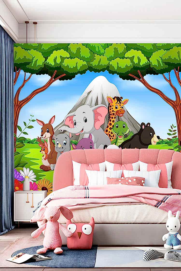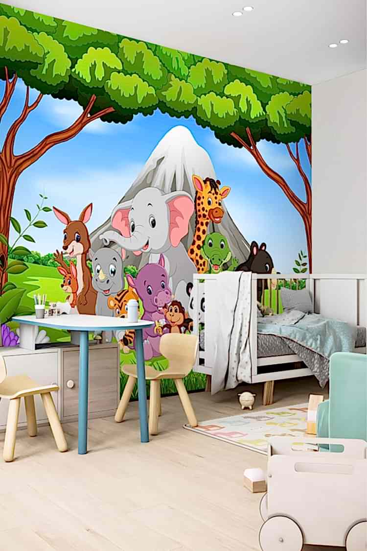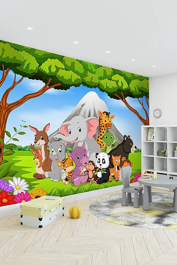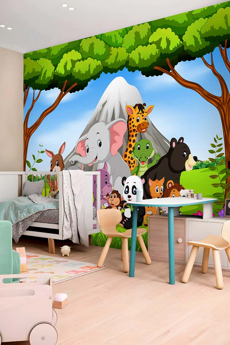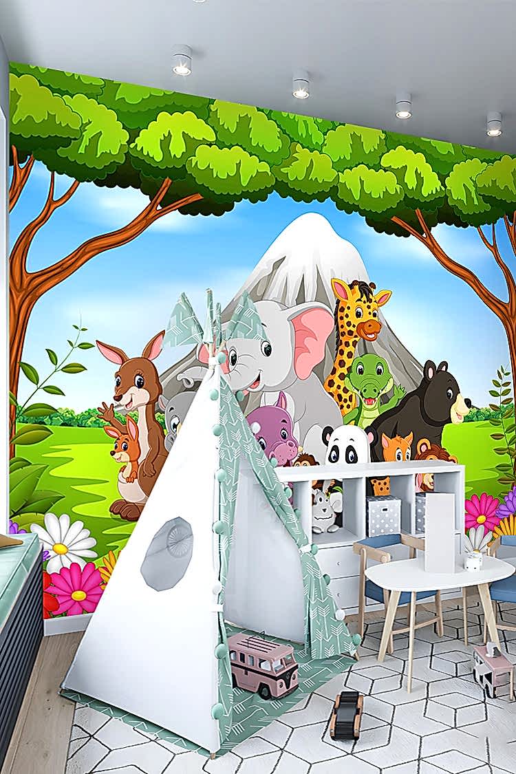 Safari Hayvan Figürlü Çocuk Odası Duvar Kağıdı