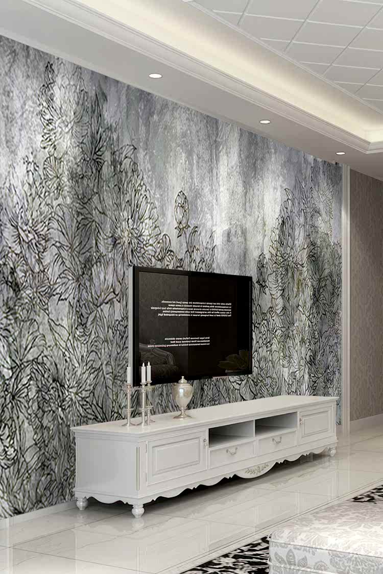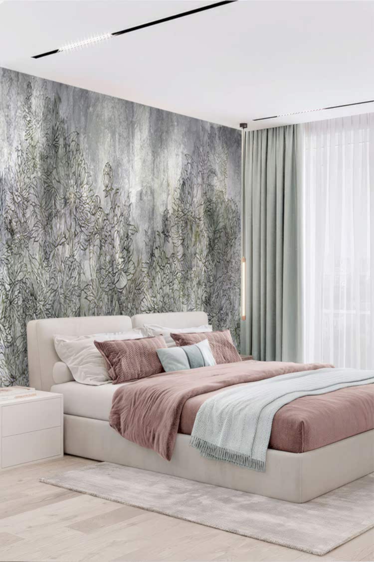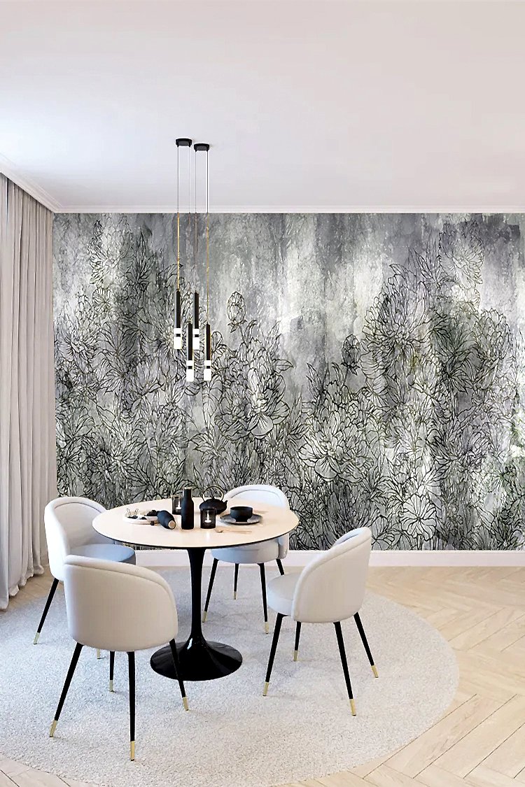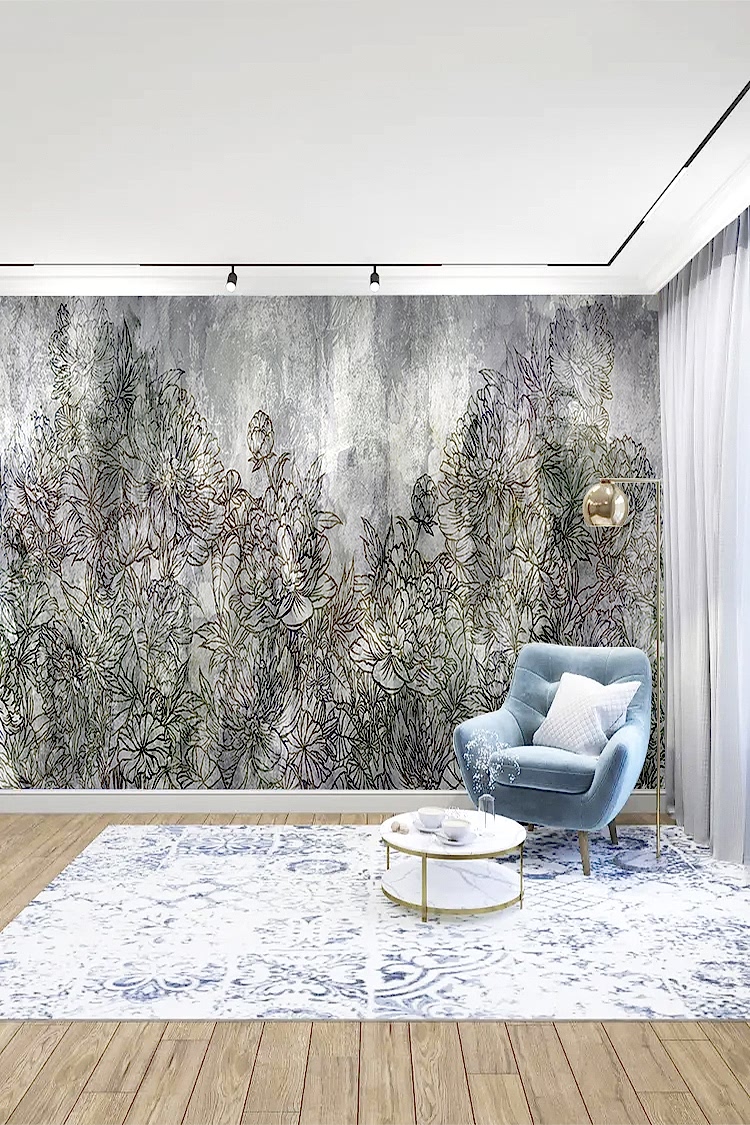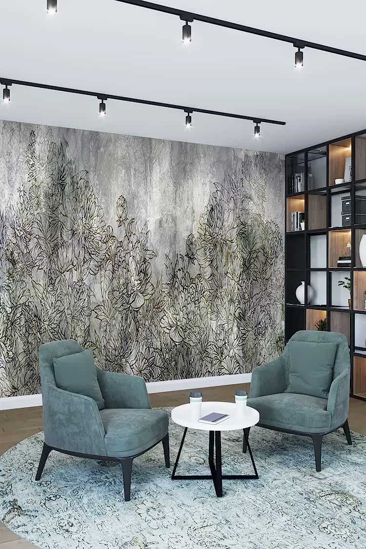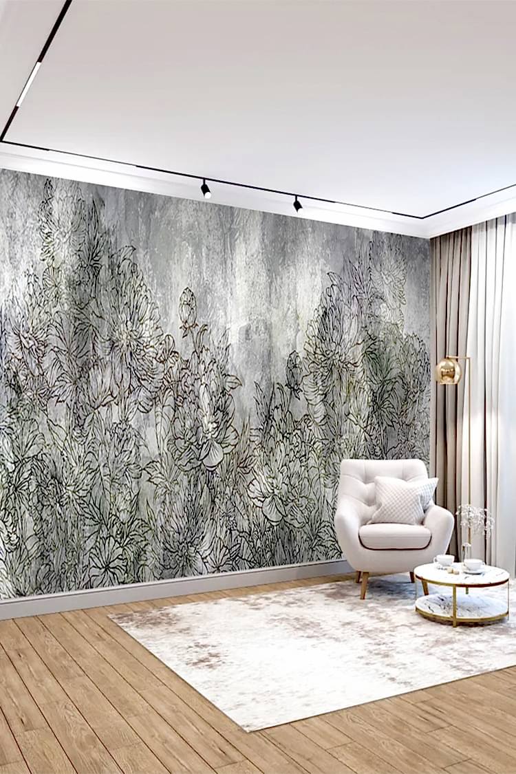 Sanatsal Bitki Desenli Duvar Kağıdı
