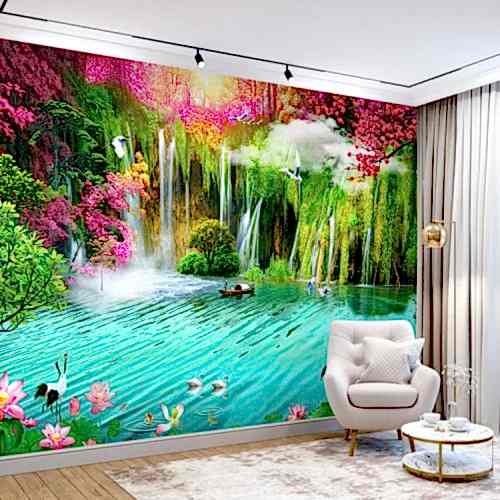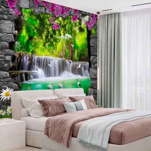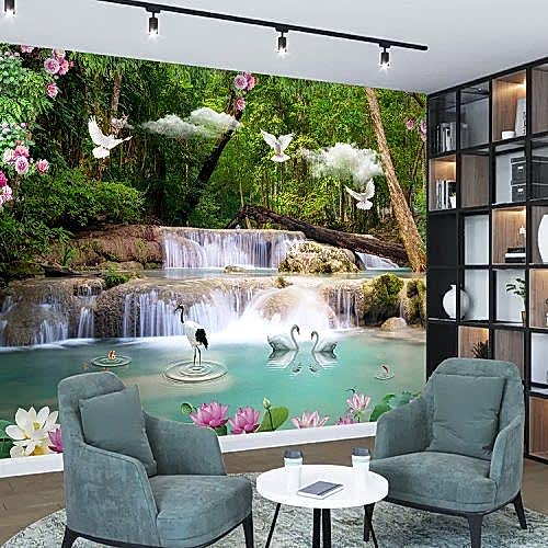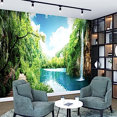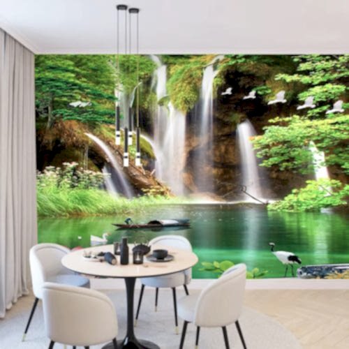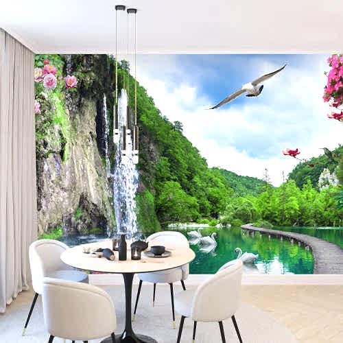Şelale Desenli Duvar Kağıtları ile Dekorasyon Fikirleri