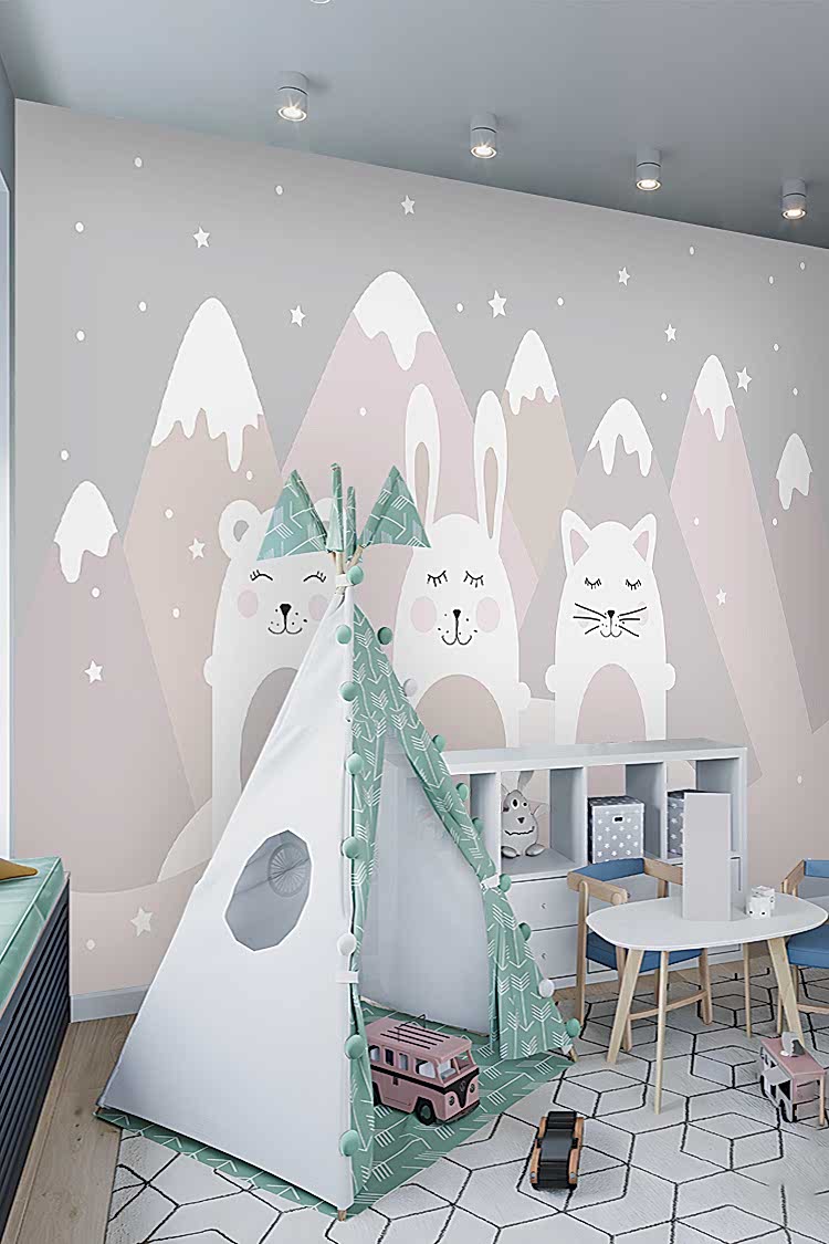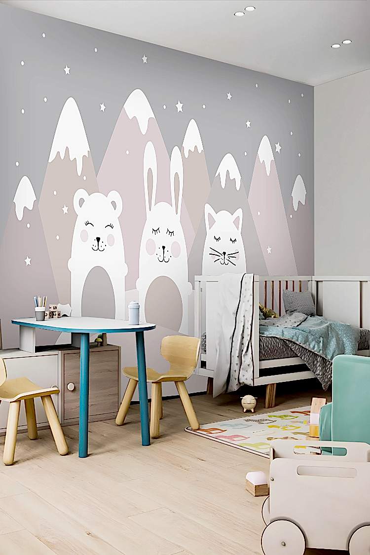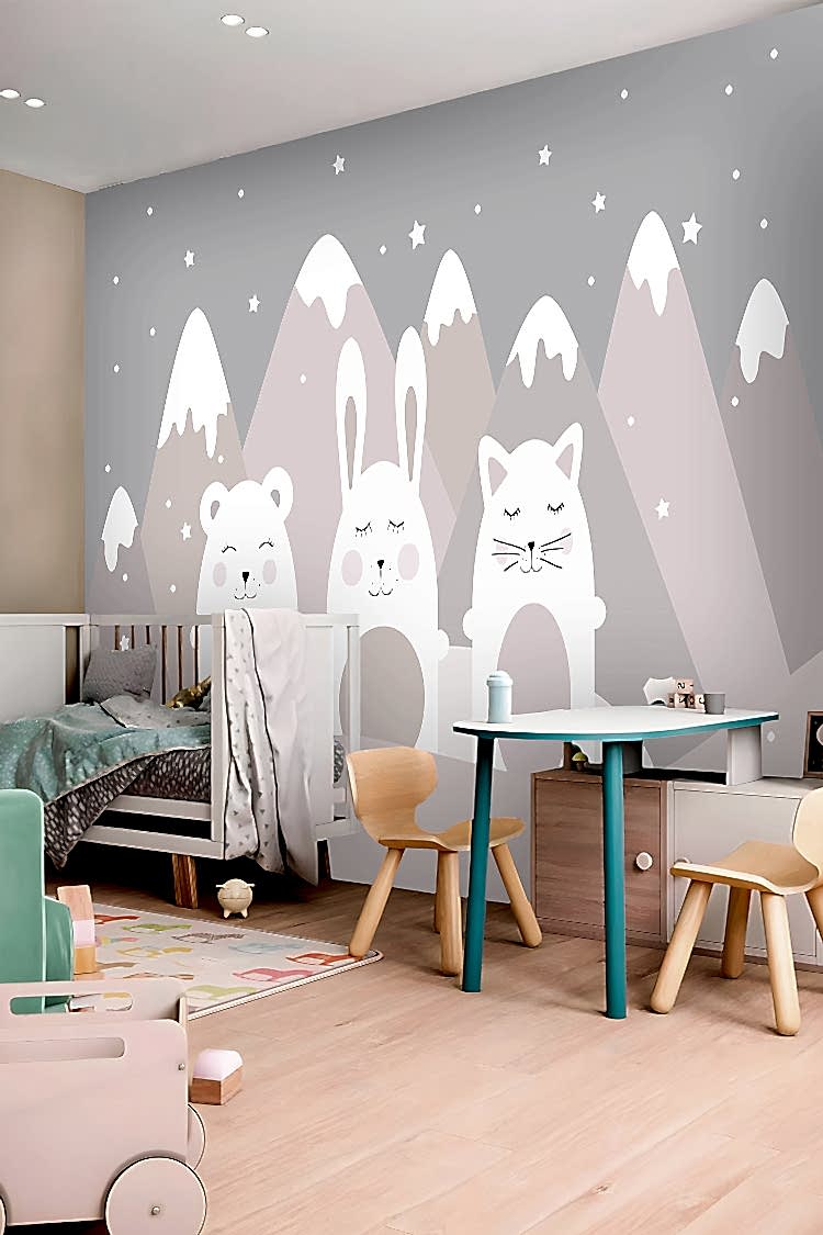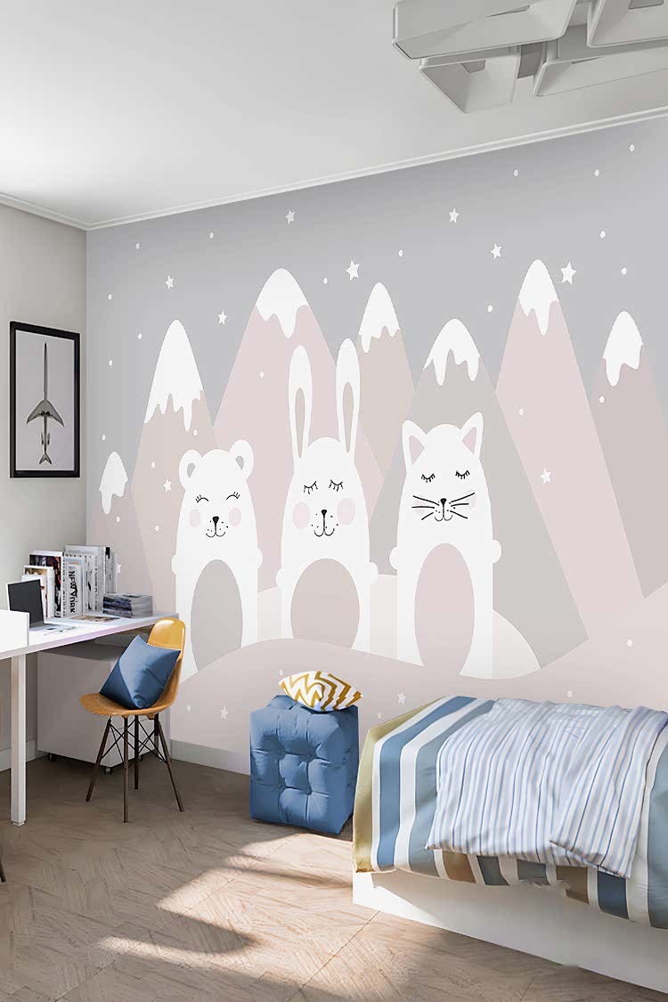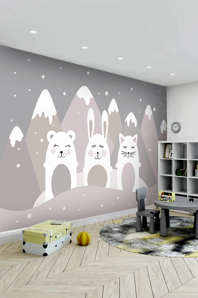 Sevimli Hayvanlar ve Kış Manzarası Duvar Kağıdı