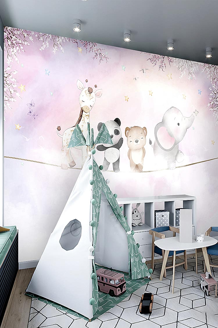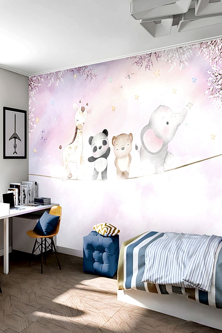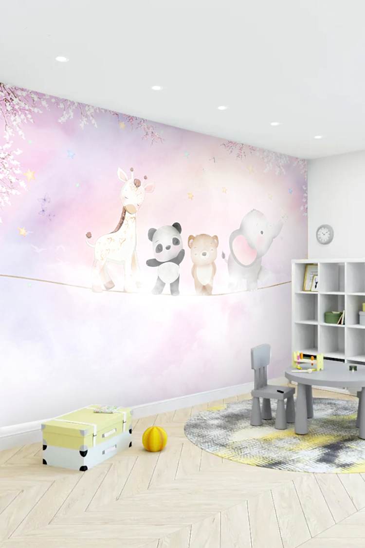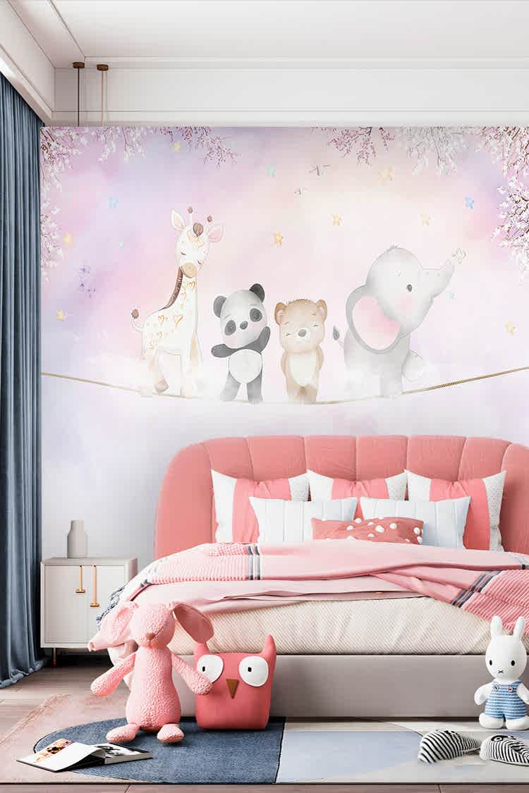 Sevimli Hayvanlar ve Pastel Arka Plan Duvar Kağıdı