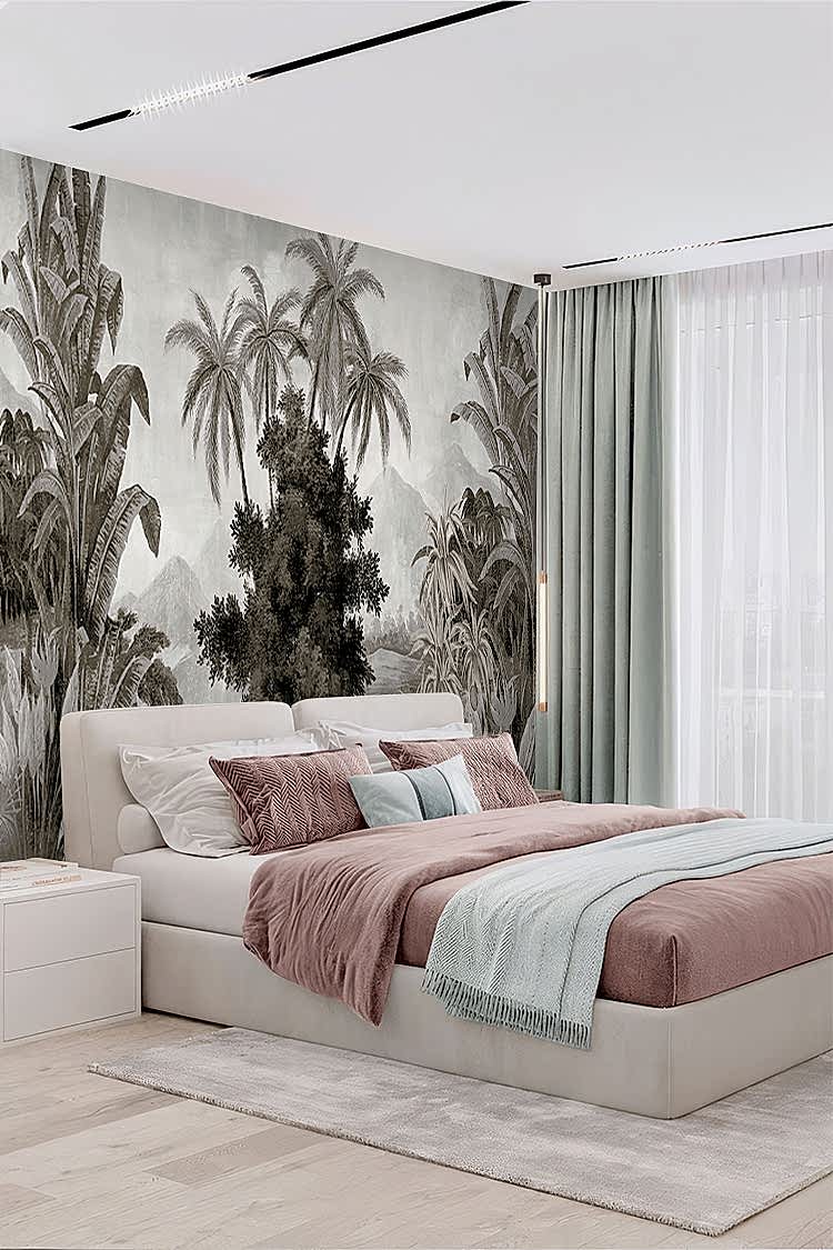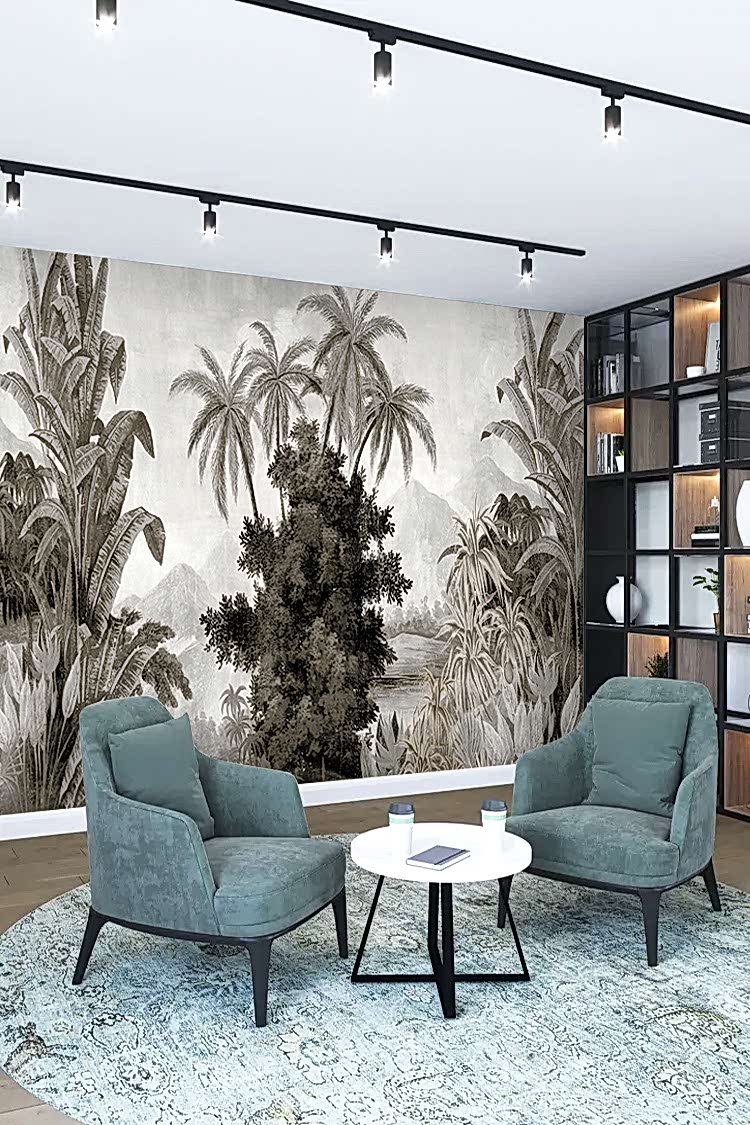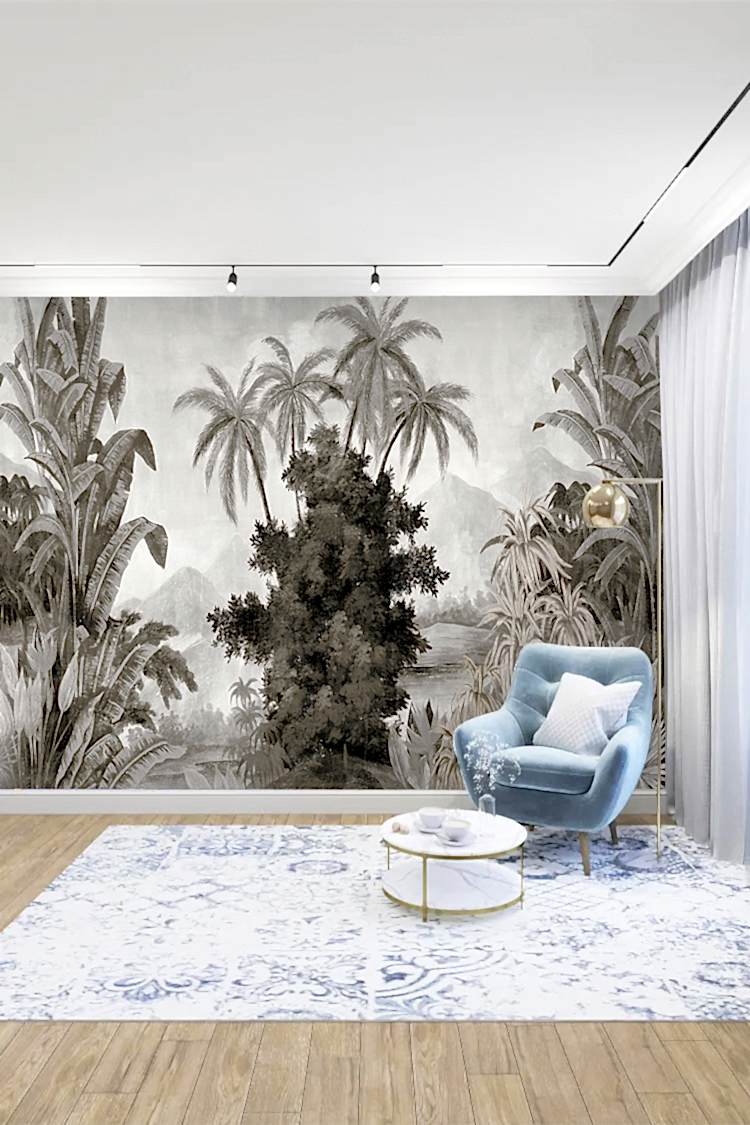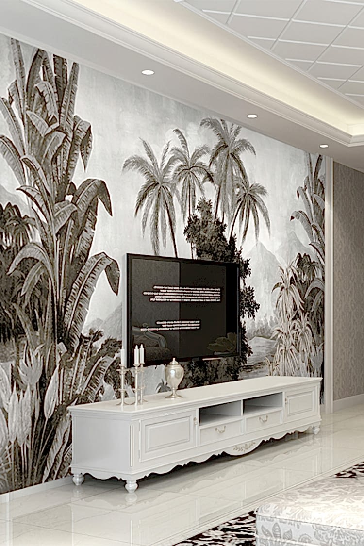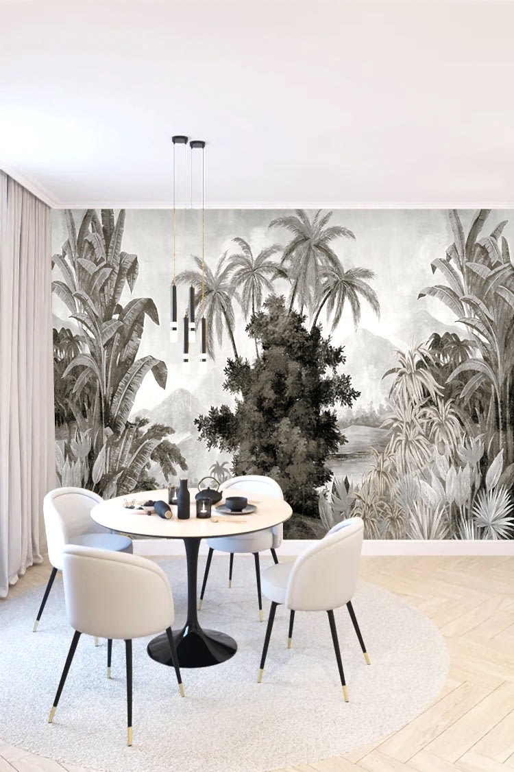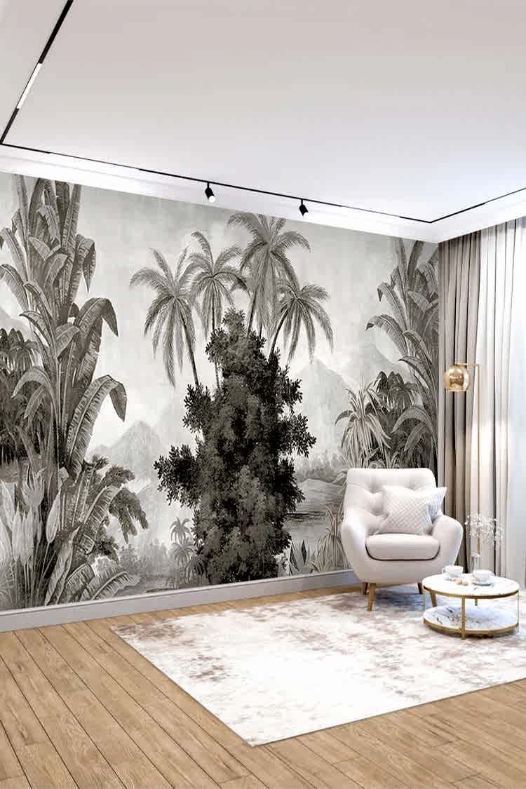 Siyah-Beyaz Tropikal Doğa Duvar Kağıdı