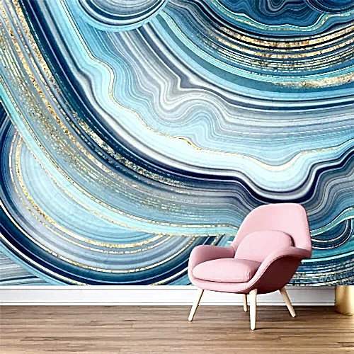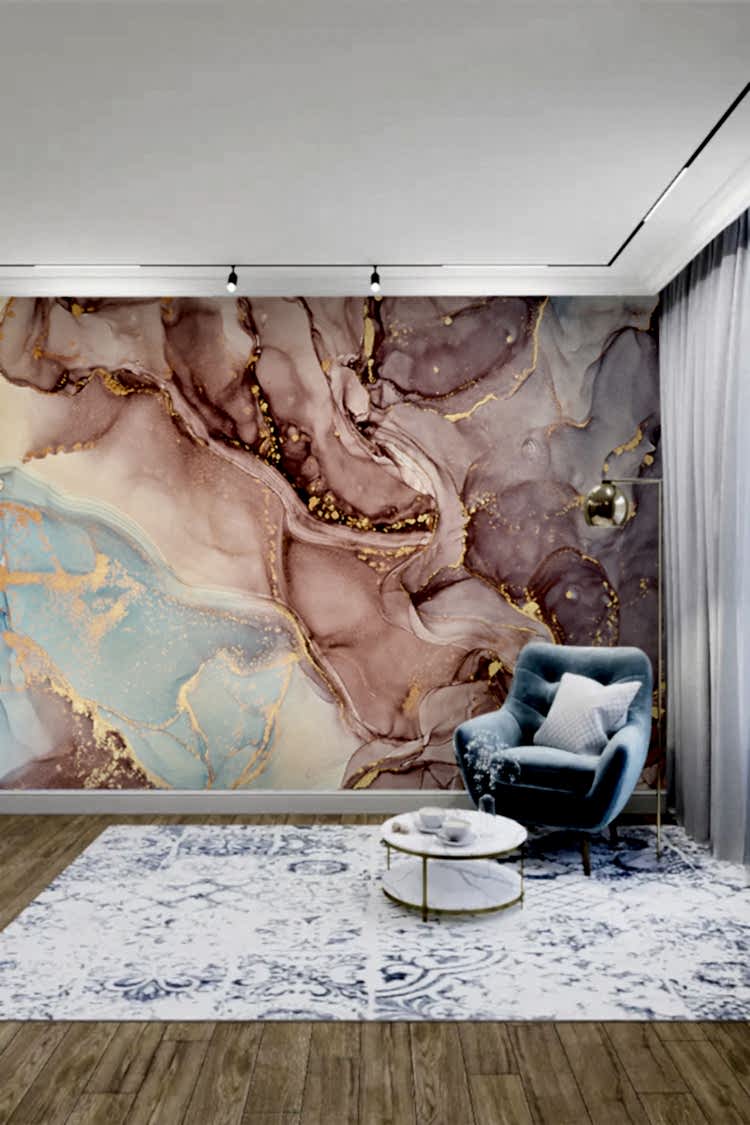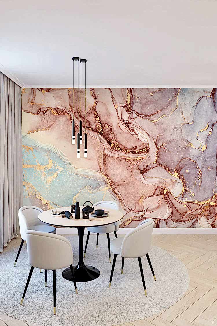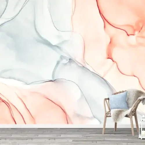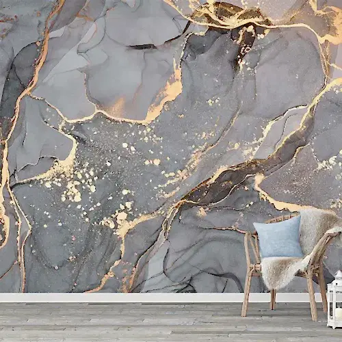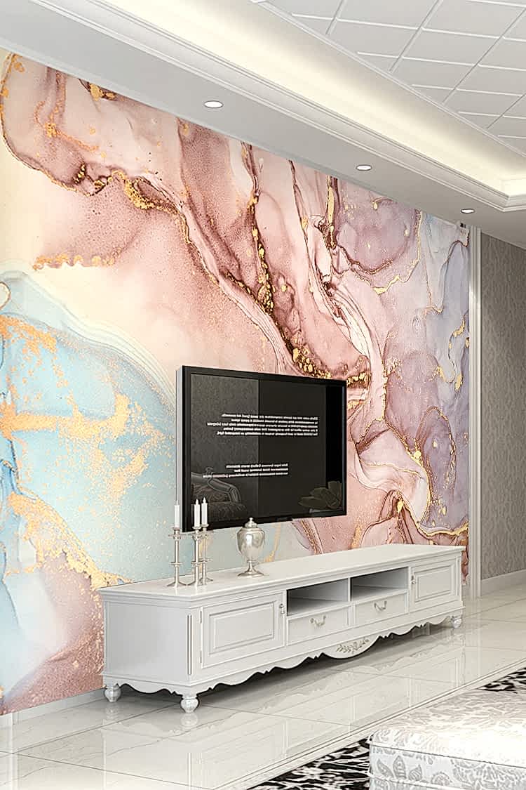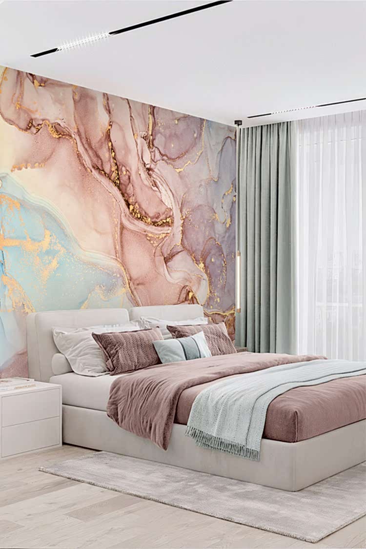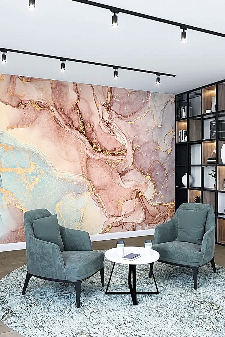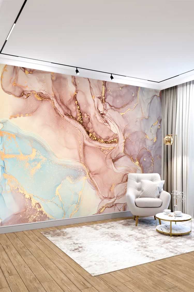 Soft Pastel Mermer Desenli Gold Damarlı Duvar Kağıdı
