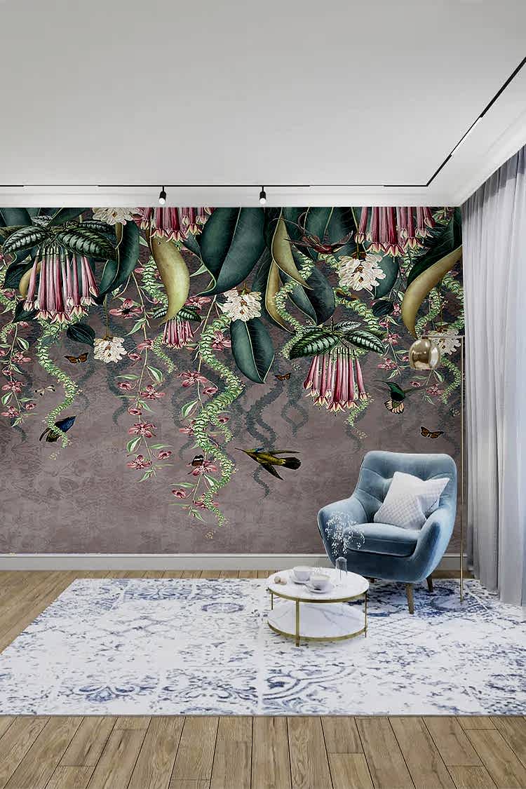 Tropikal Çiçekli Duvar Kağıdı