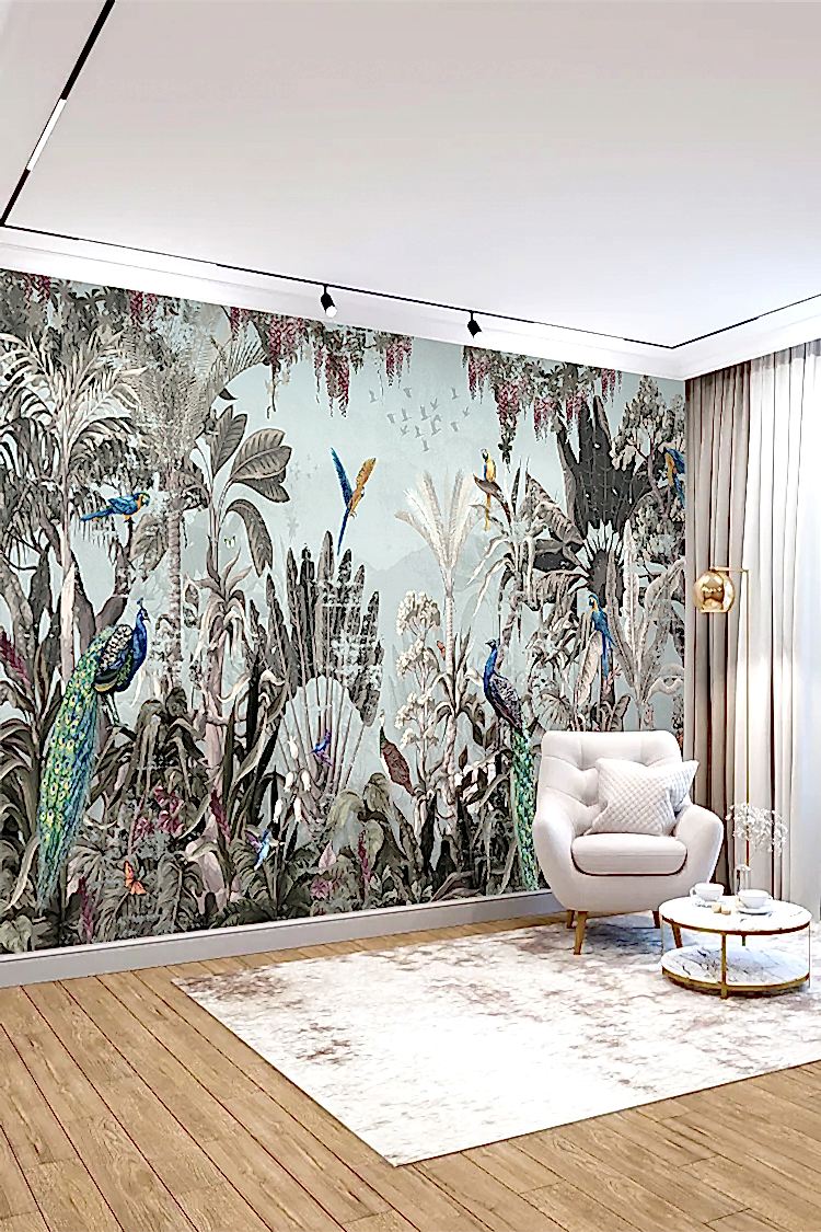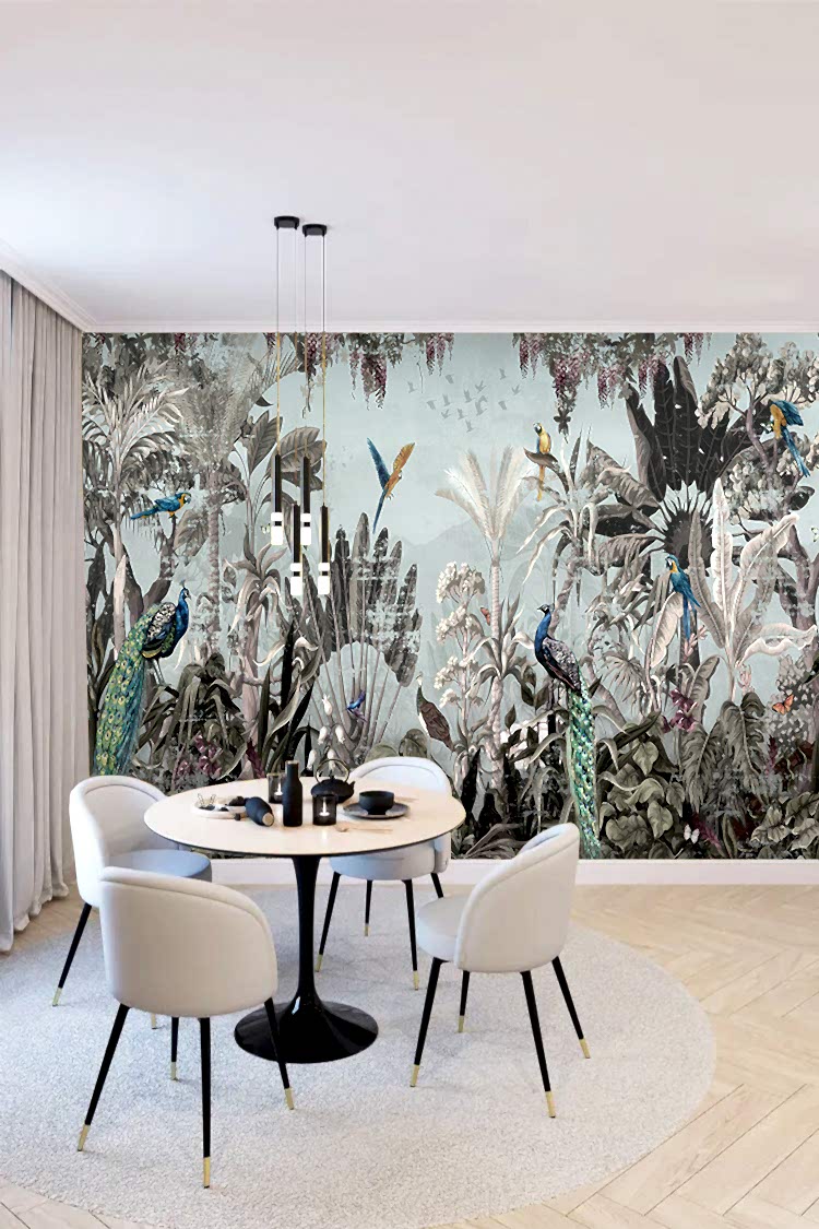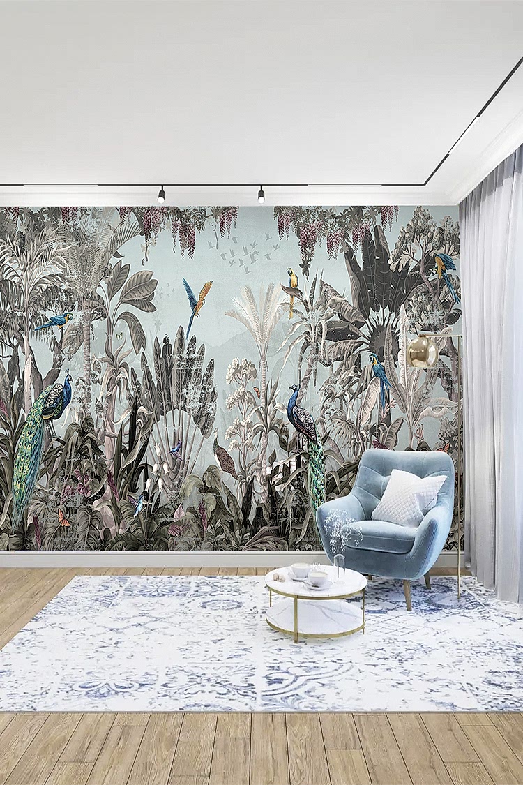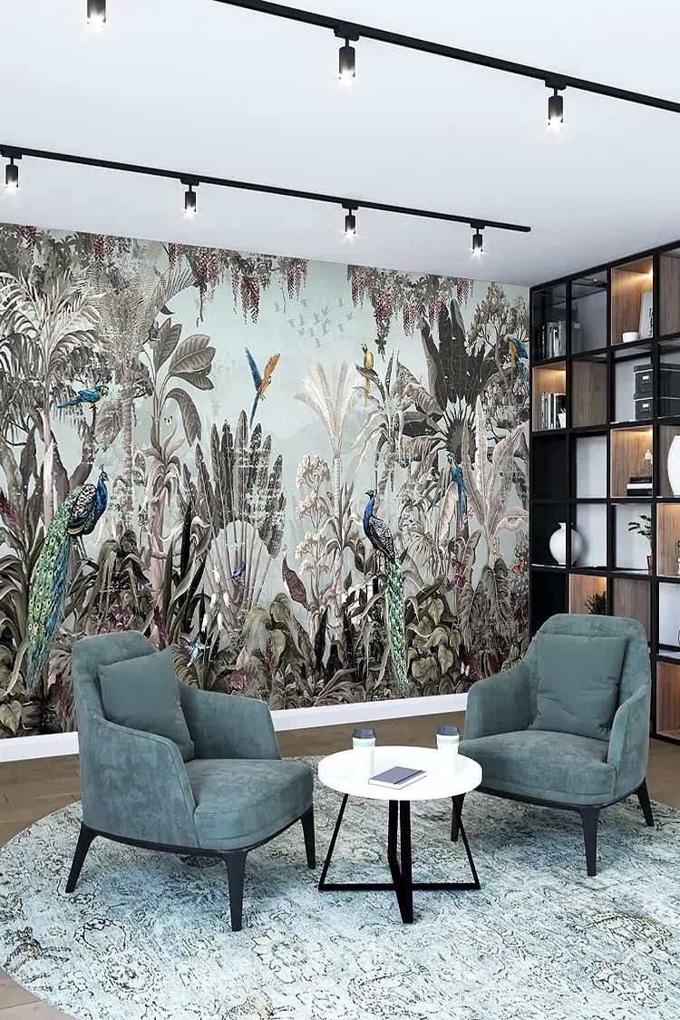 Tropikal Doğa ve Kuşlar Temalı Duvar Kağıdı