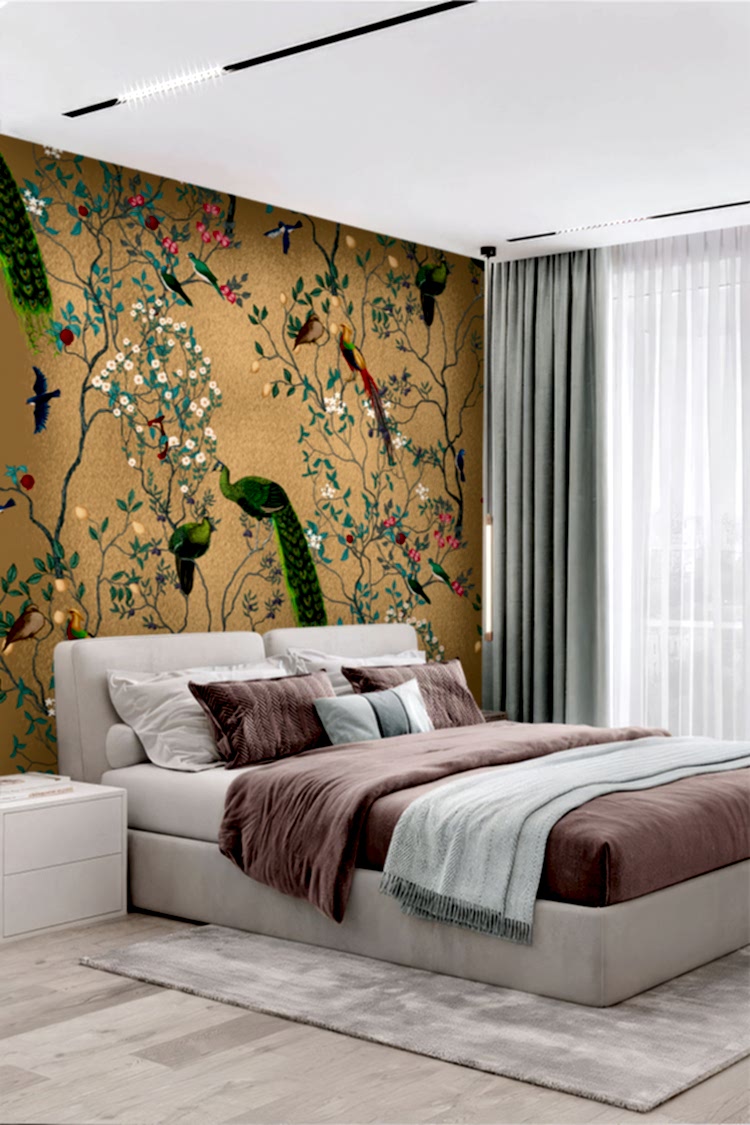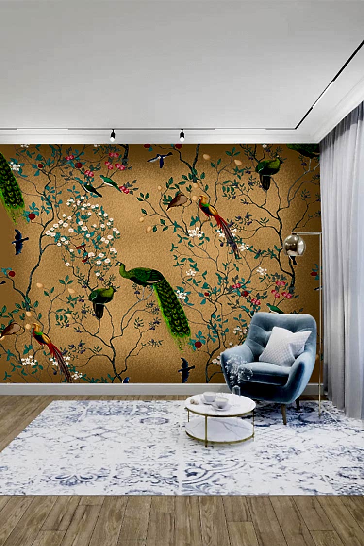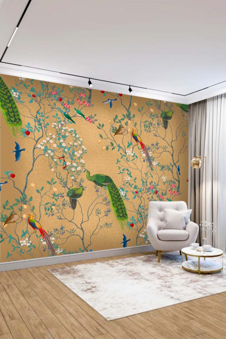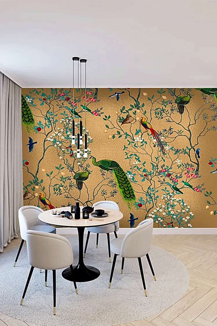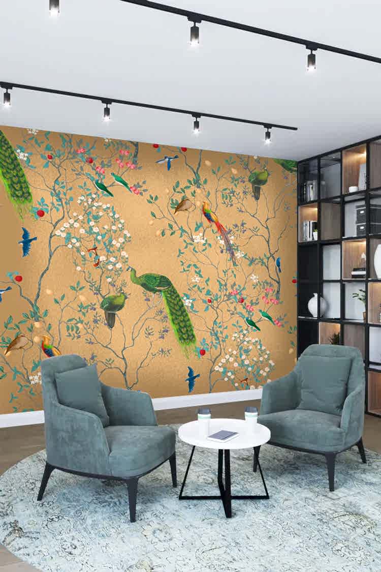 Tropikal Kuşlar ve Çiçek Deseni Duvar Kağıdı