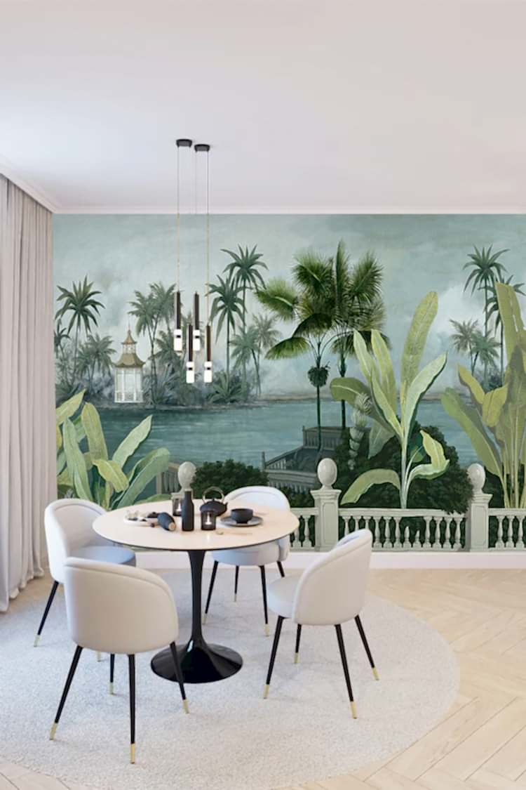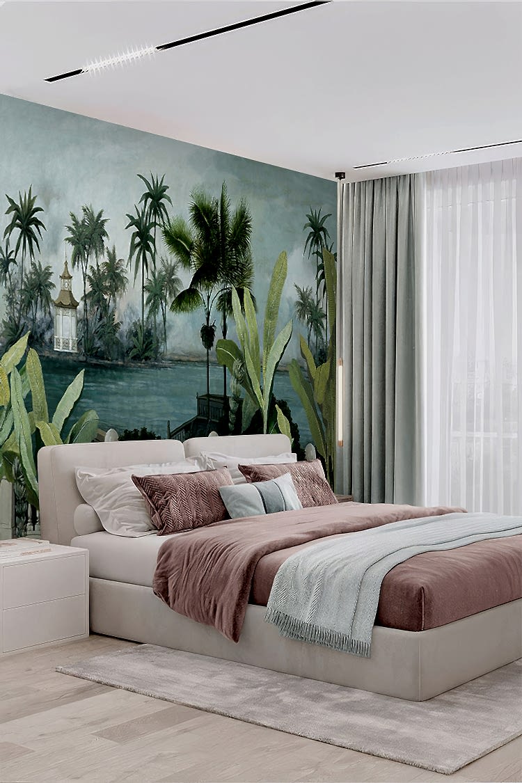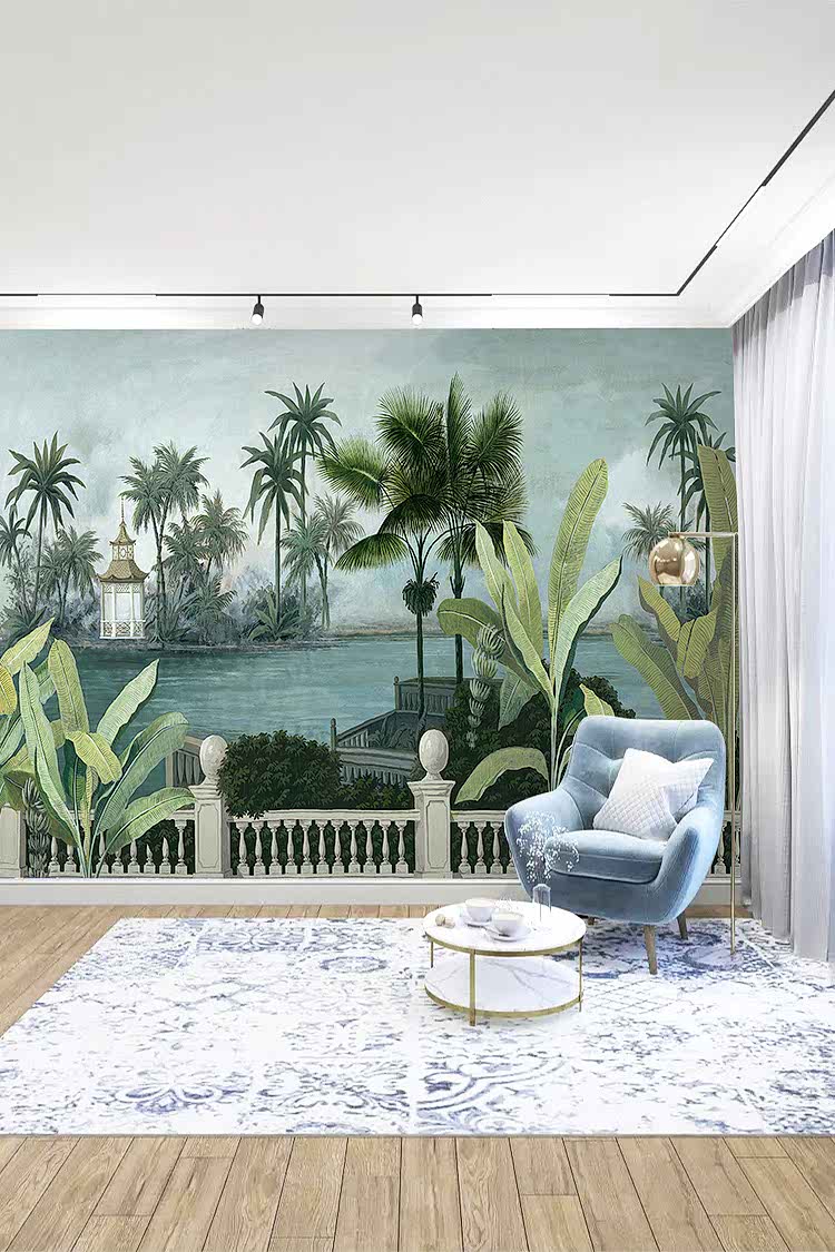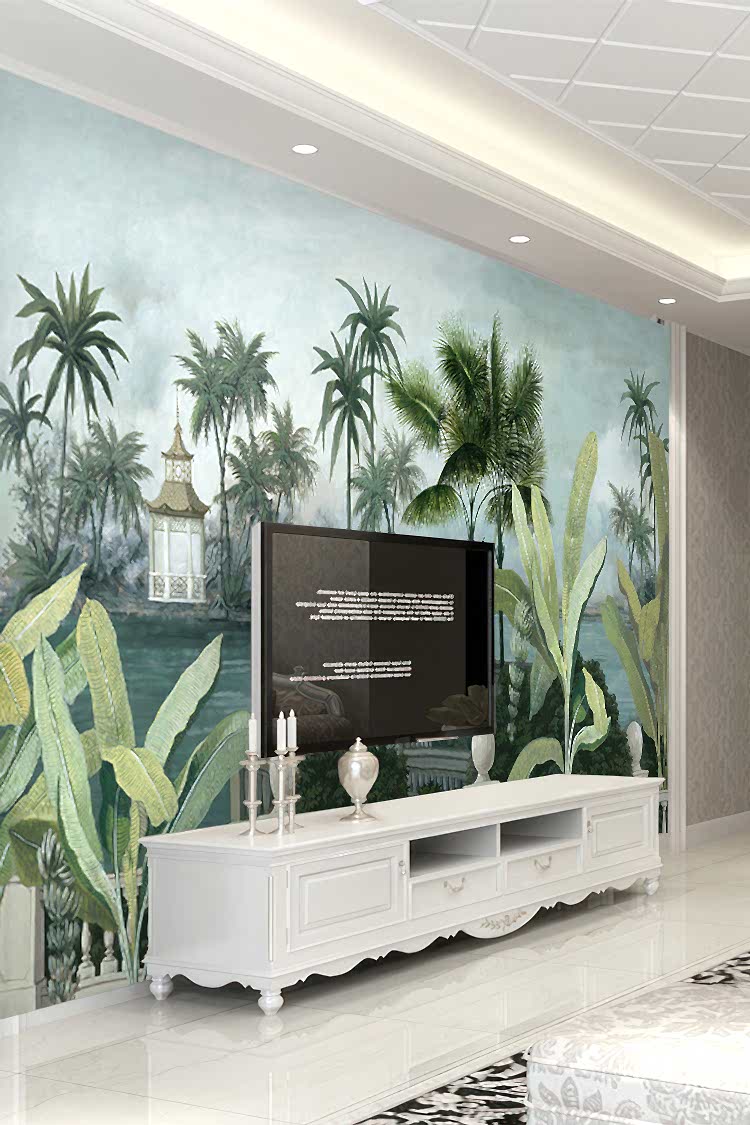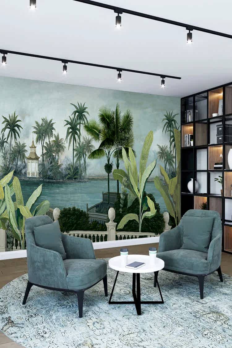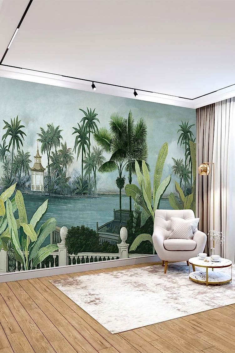 Tropikal Saray ve Palmiye Desenli Duvar Kağıdı
