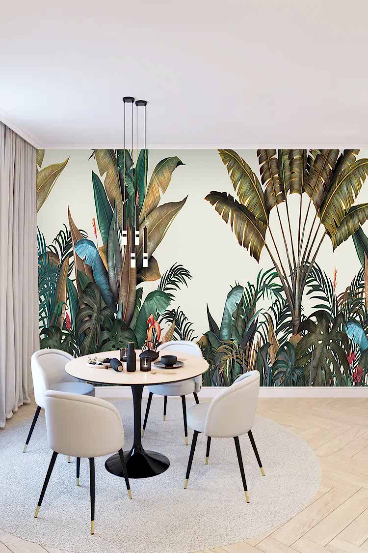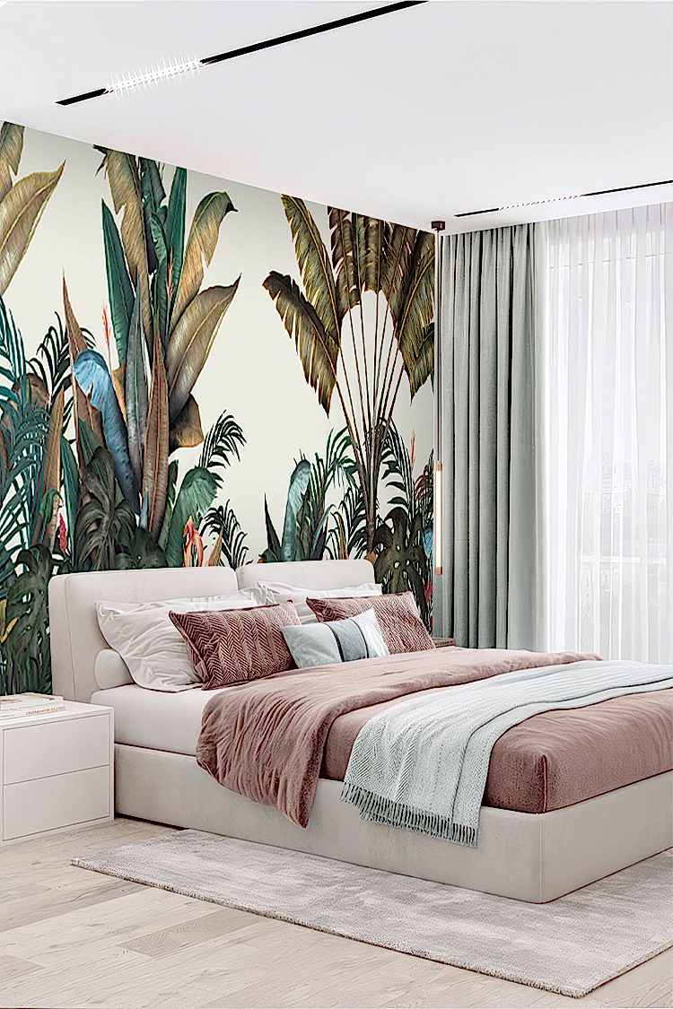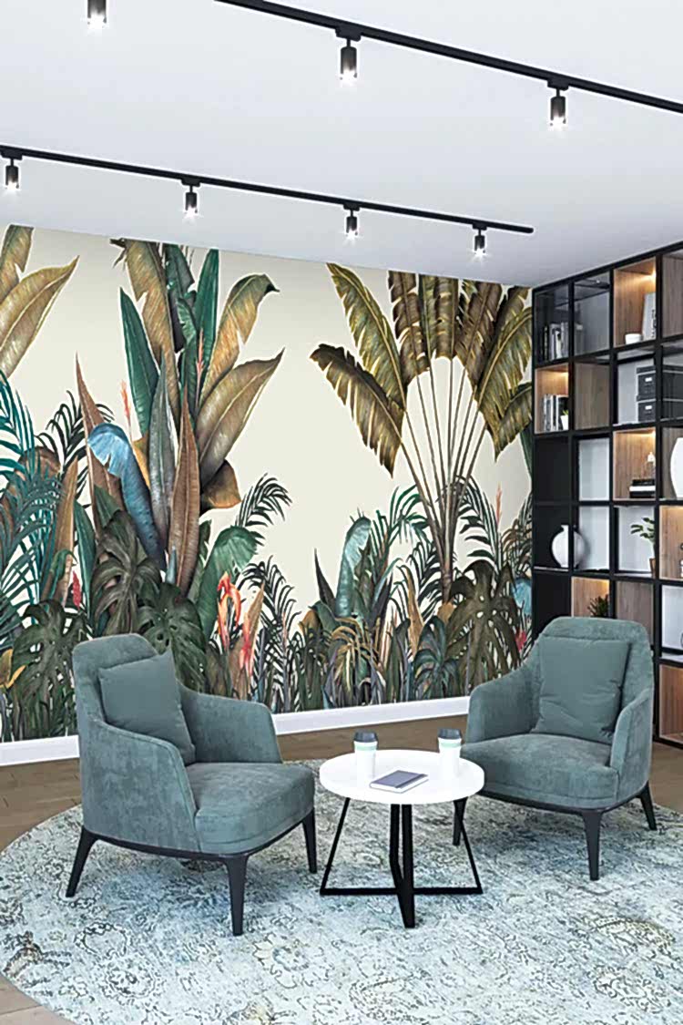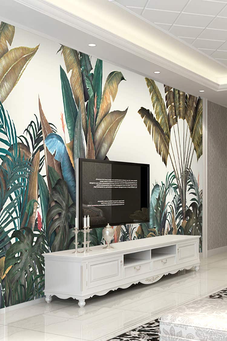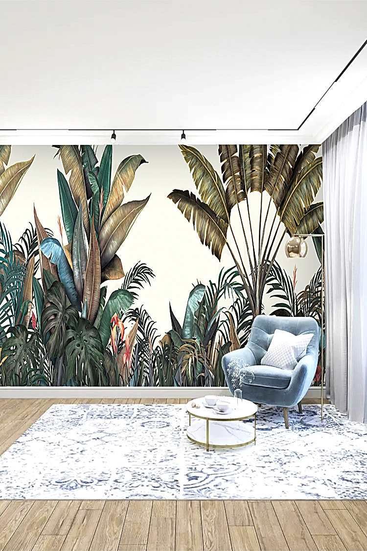 Tropikal Yaprak Desenli Duvar Kağıdı