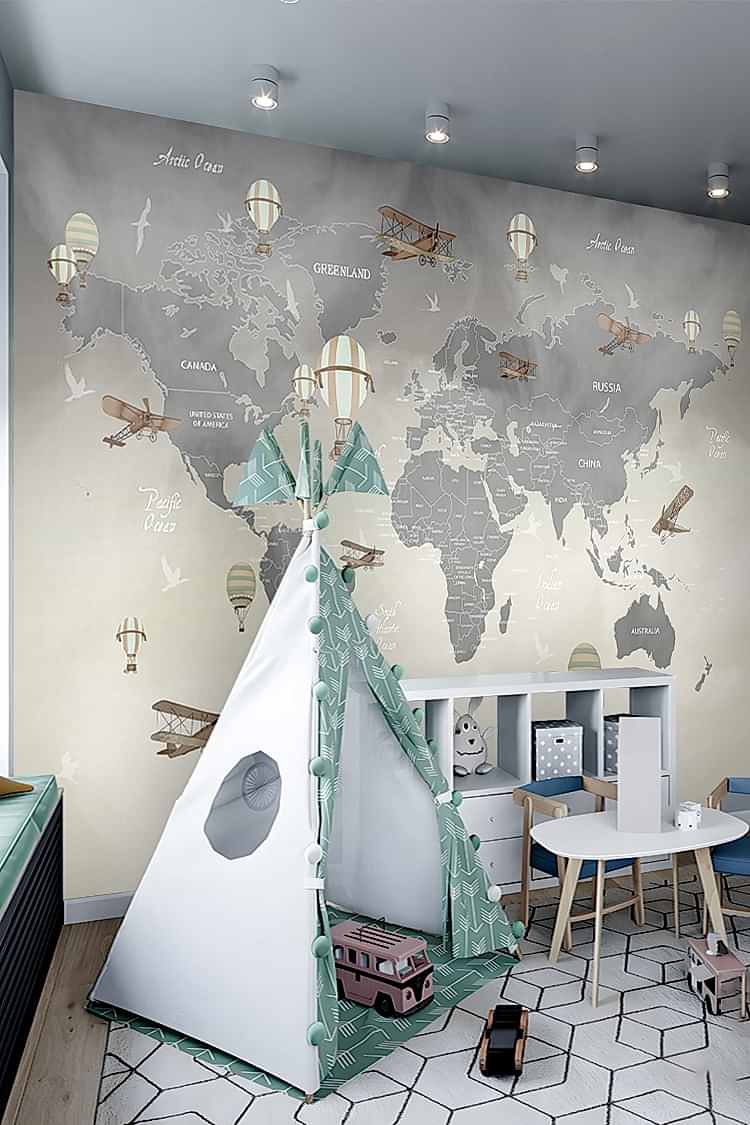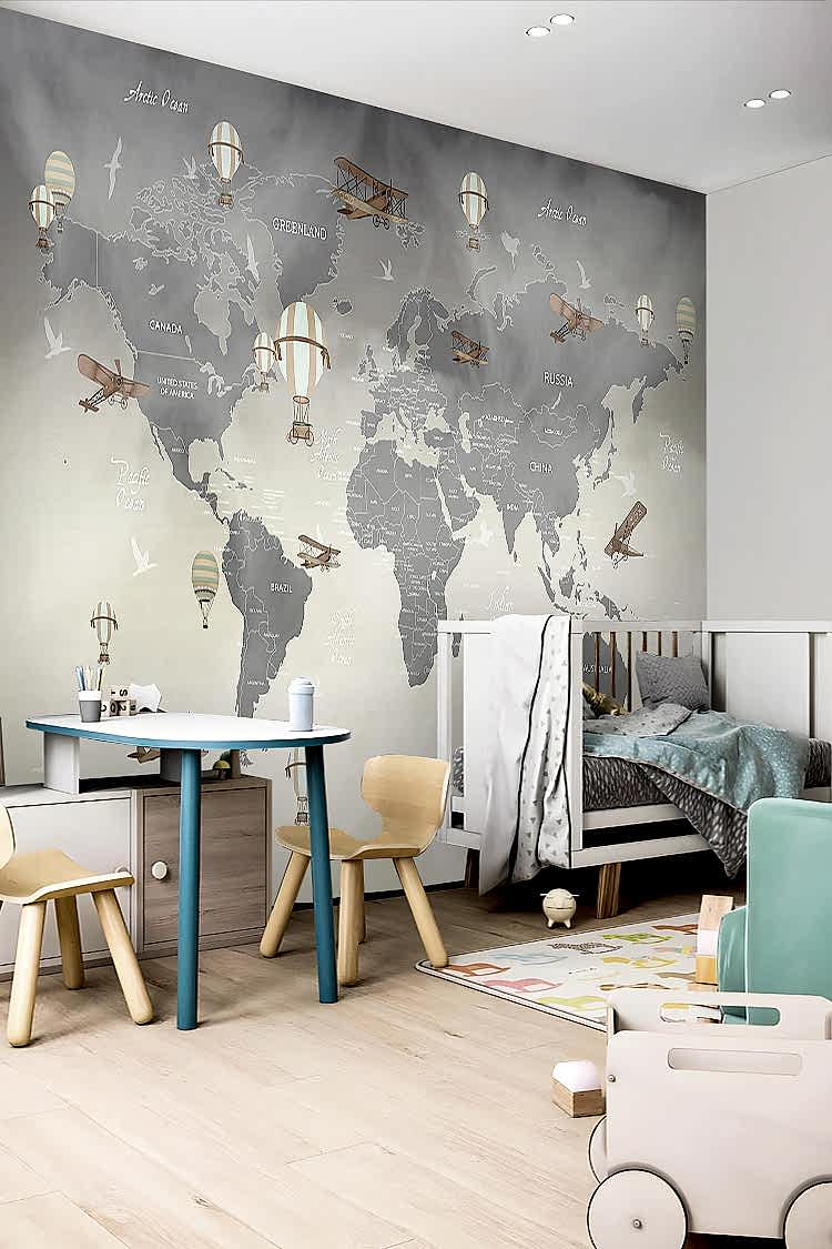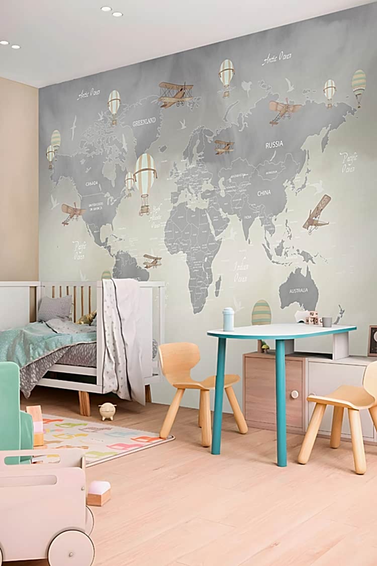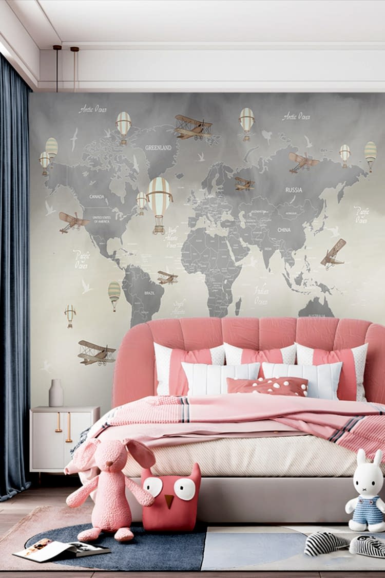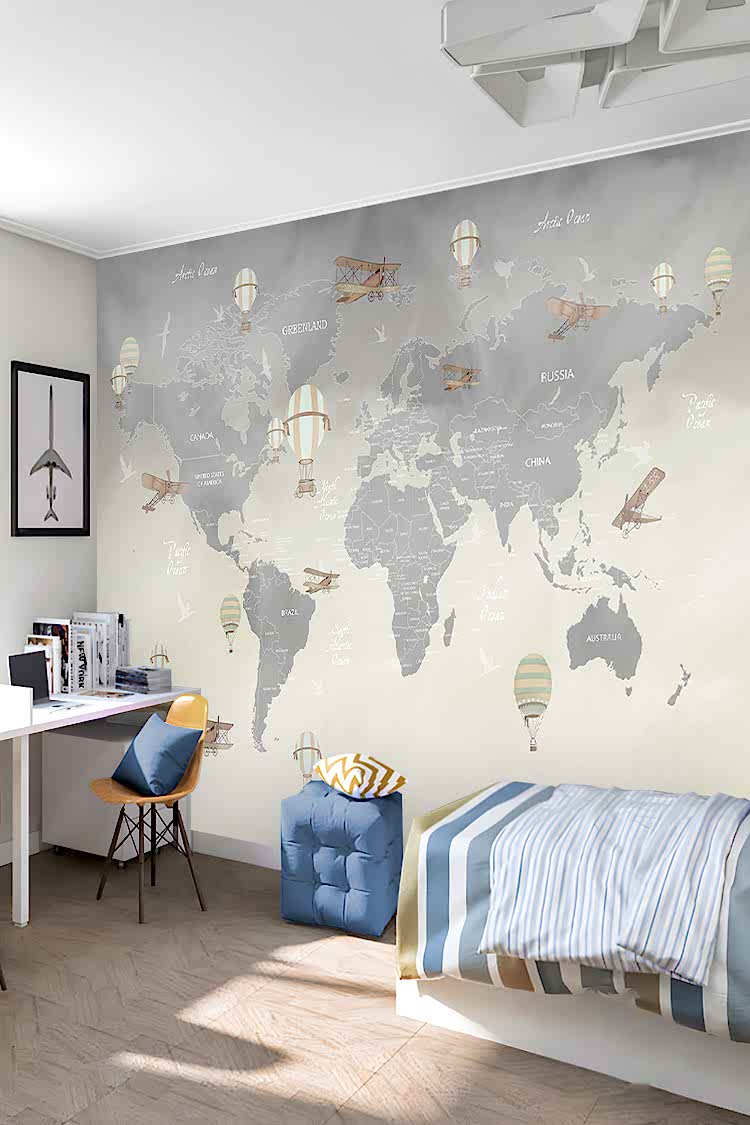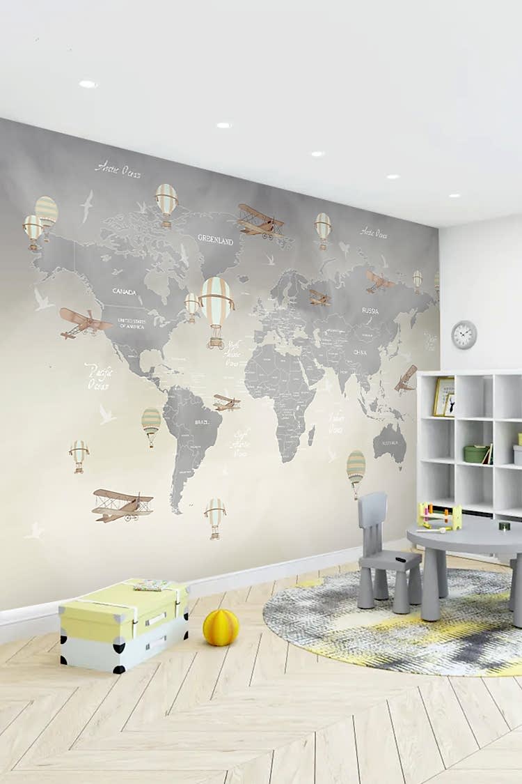 Uçan Balonlar ve Dünya Haritası Duvar Kağıdı
