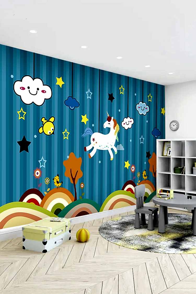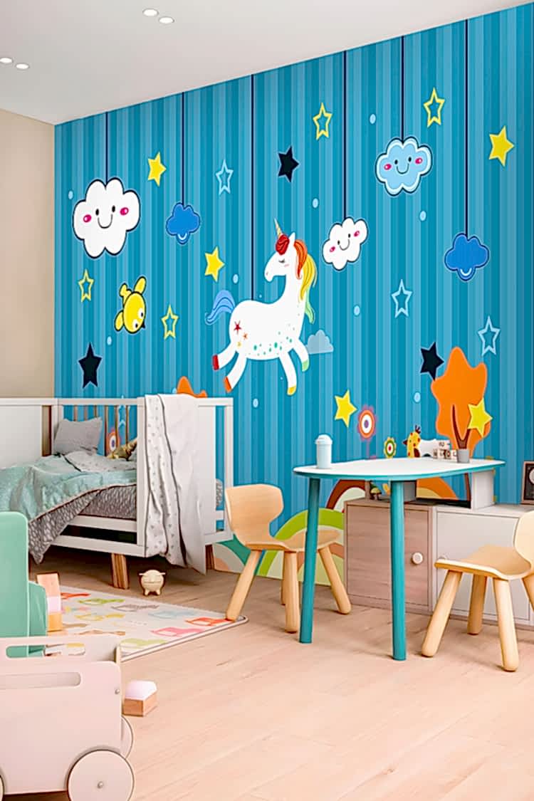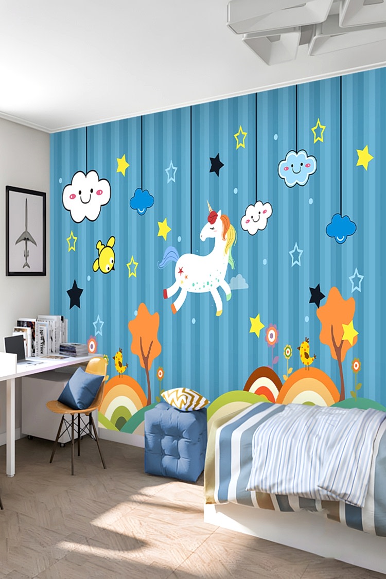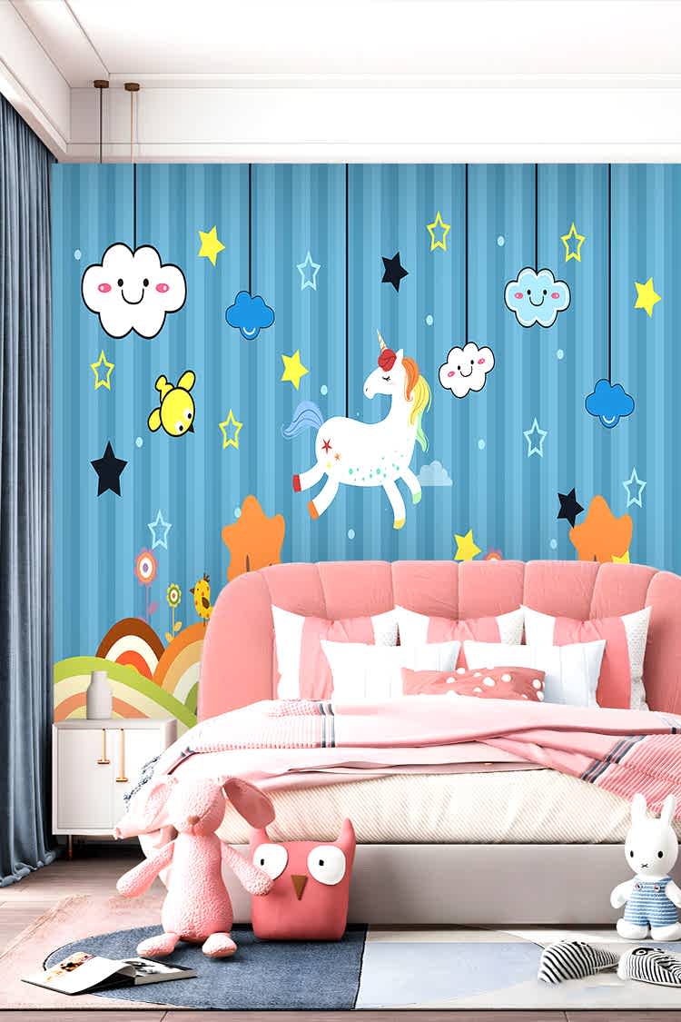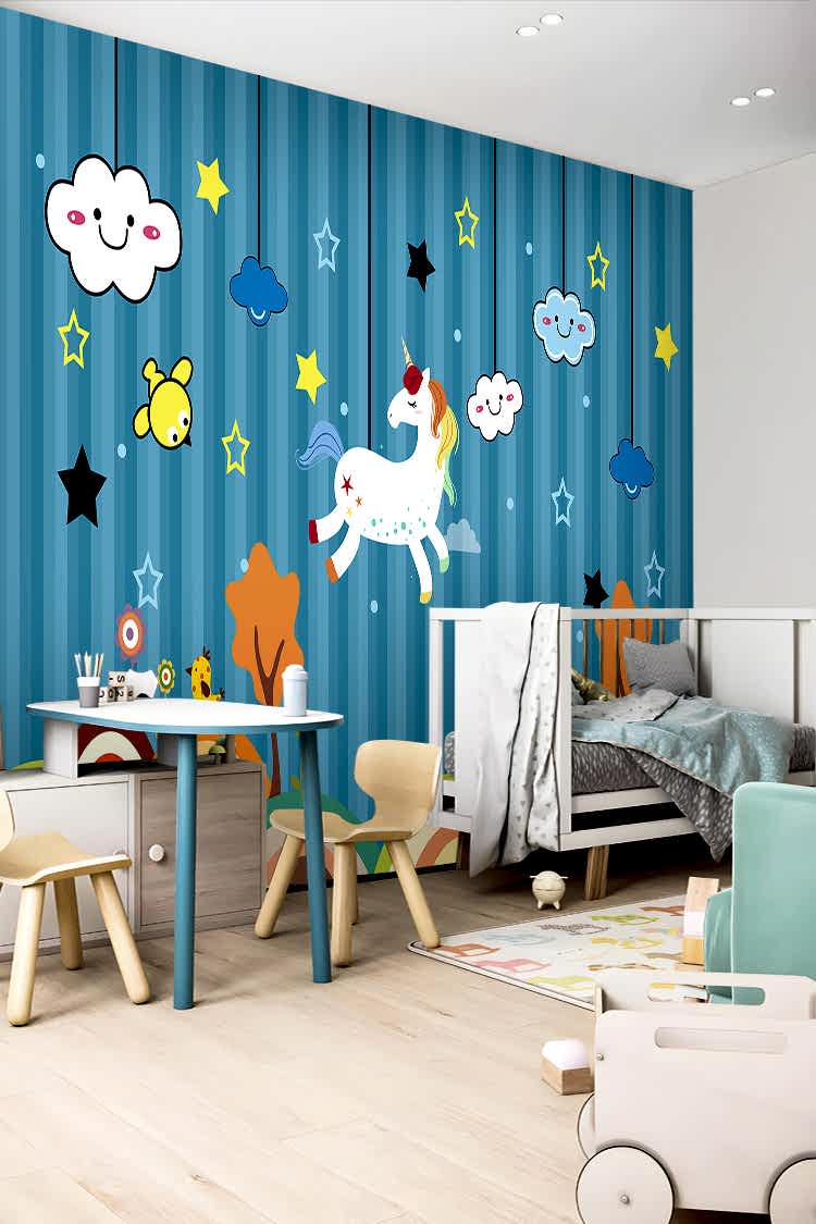 Unicorn ve Yıldız Desenli Çocuk Duvar Kağıdı