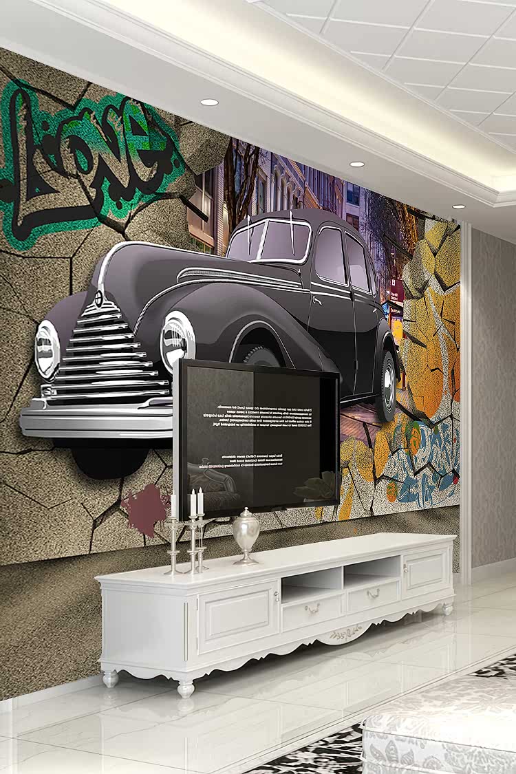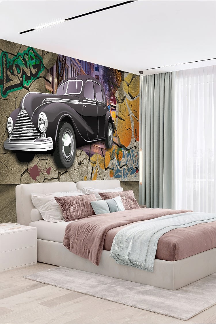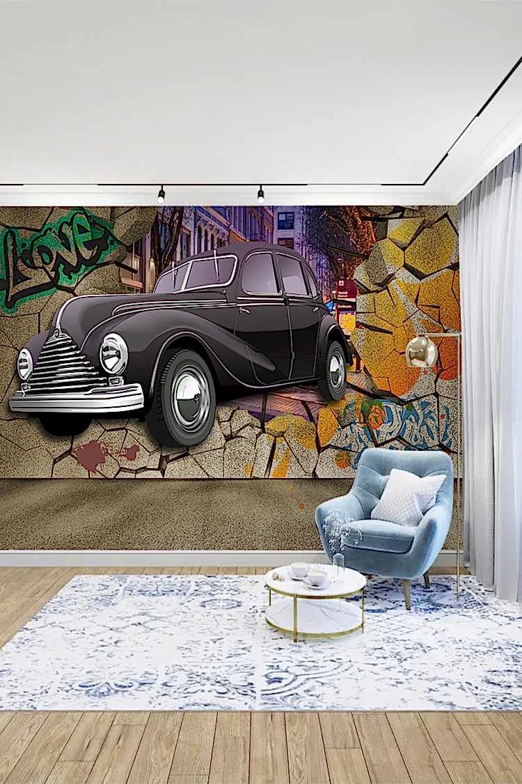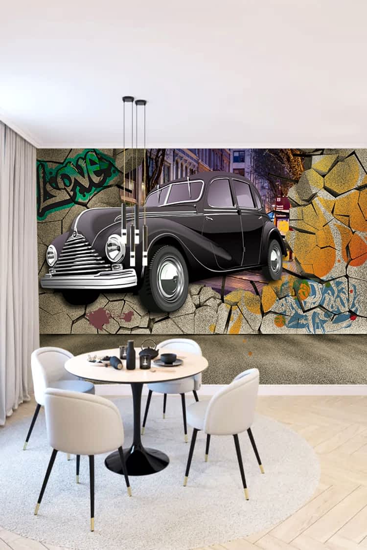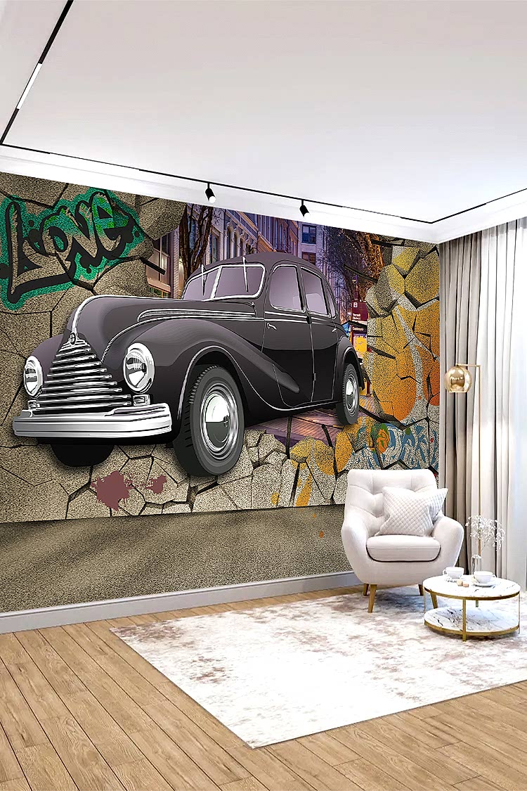 Vintage Araba ve Graffiti Duvar Kağıdı