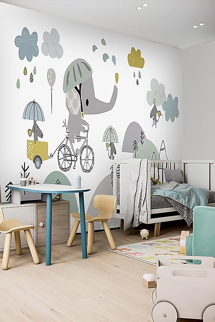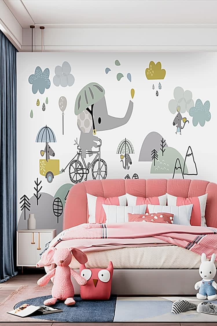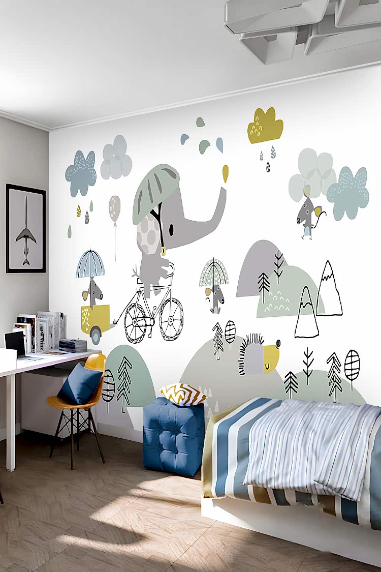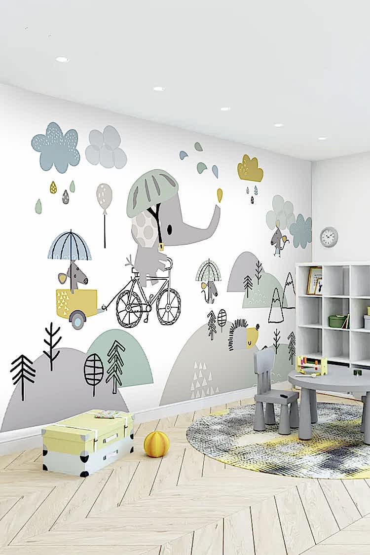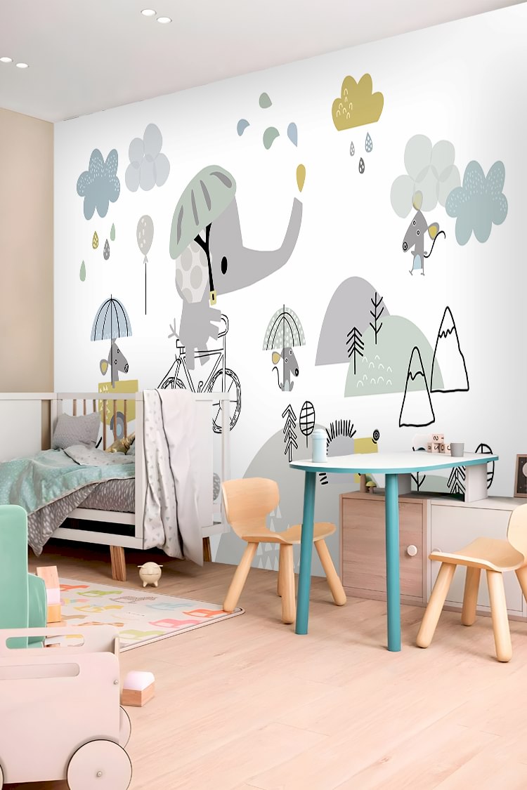 Yağmur Temalı Çocuk Odası Duvar Kağıdı