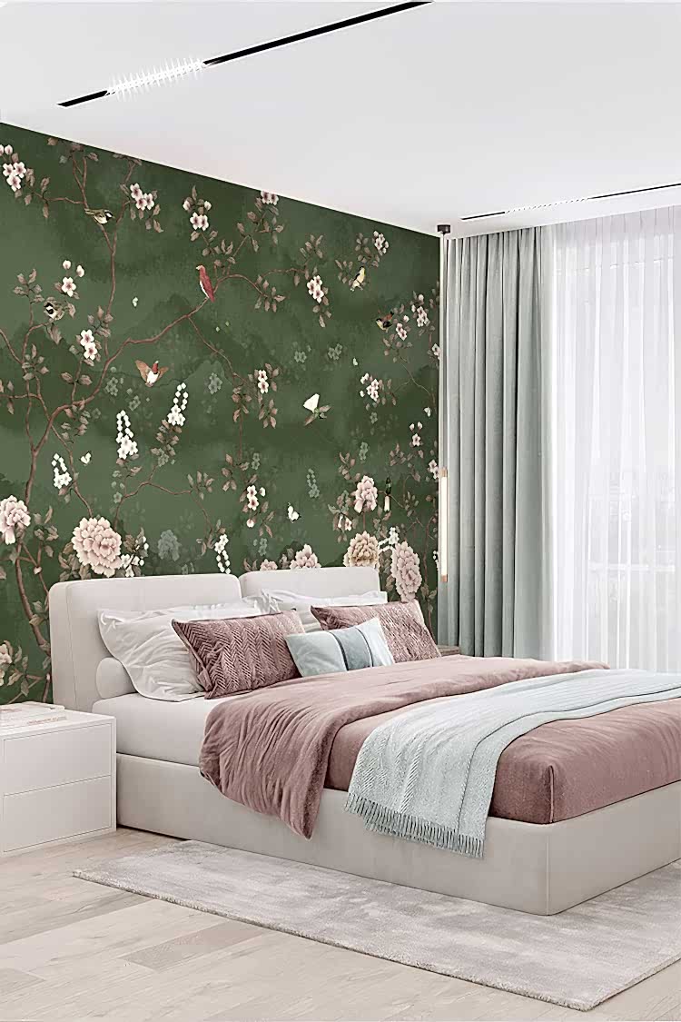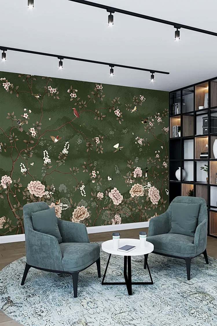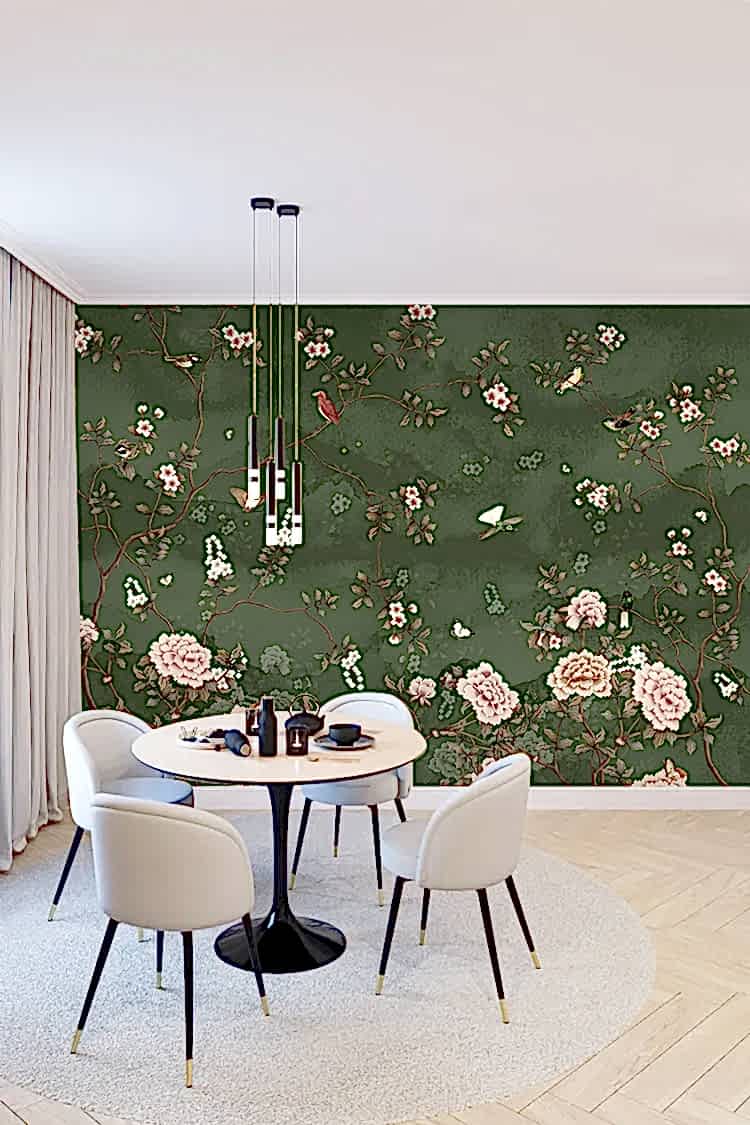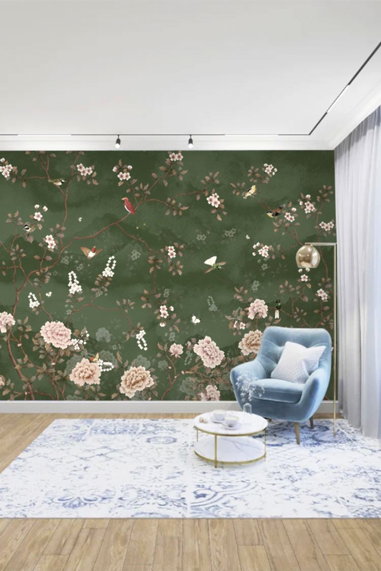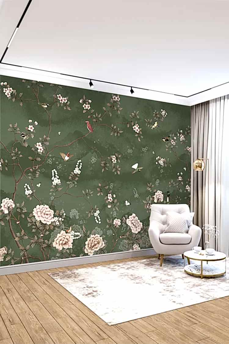 Yeşil Çiçek Desenli Duvar Kağıdı