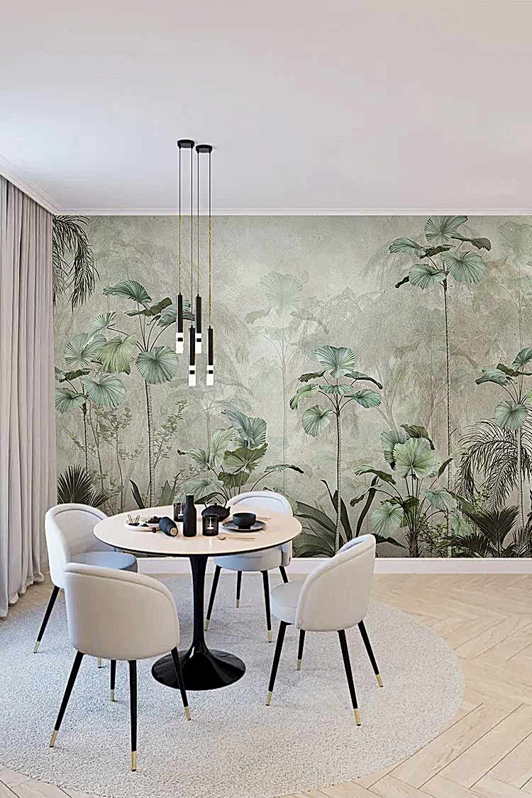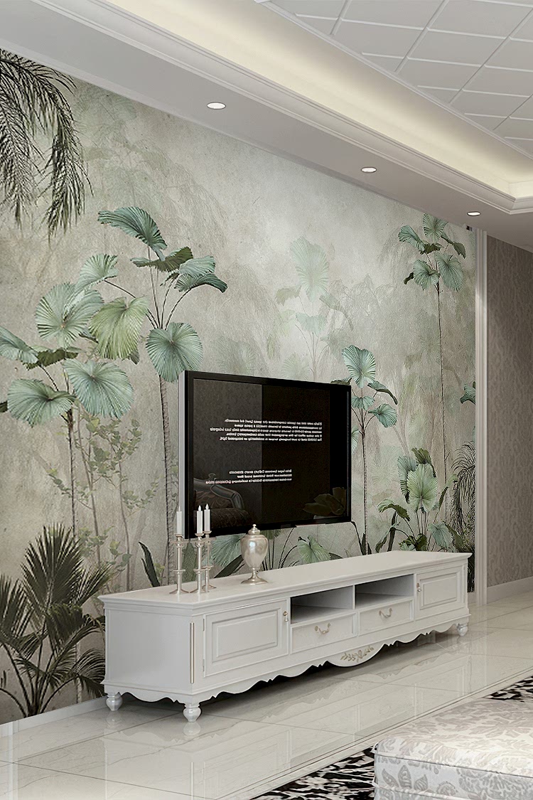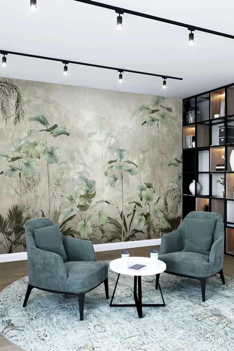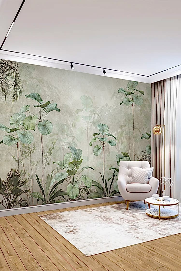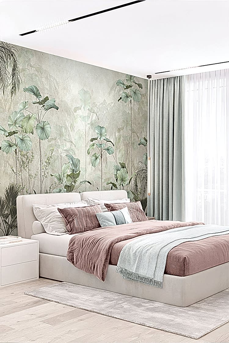 Yumuşak Renklerle Tropikal Bitkiler Desenli Duvar Kağıdı